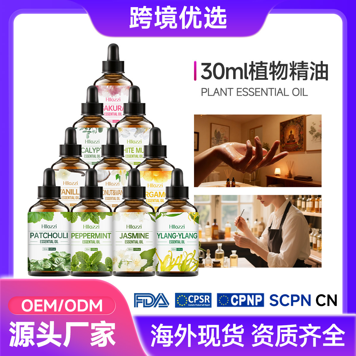 Hllozzi65種類30ml植物精油アロマセラピーマッサージアロマスキンケアヒマシ油ラベンダーローズ精油