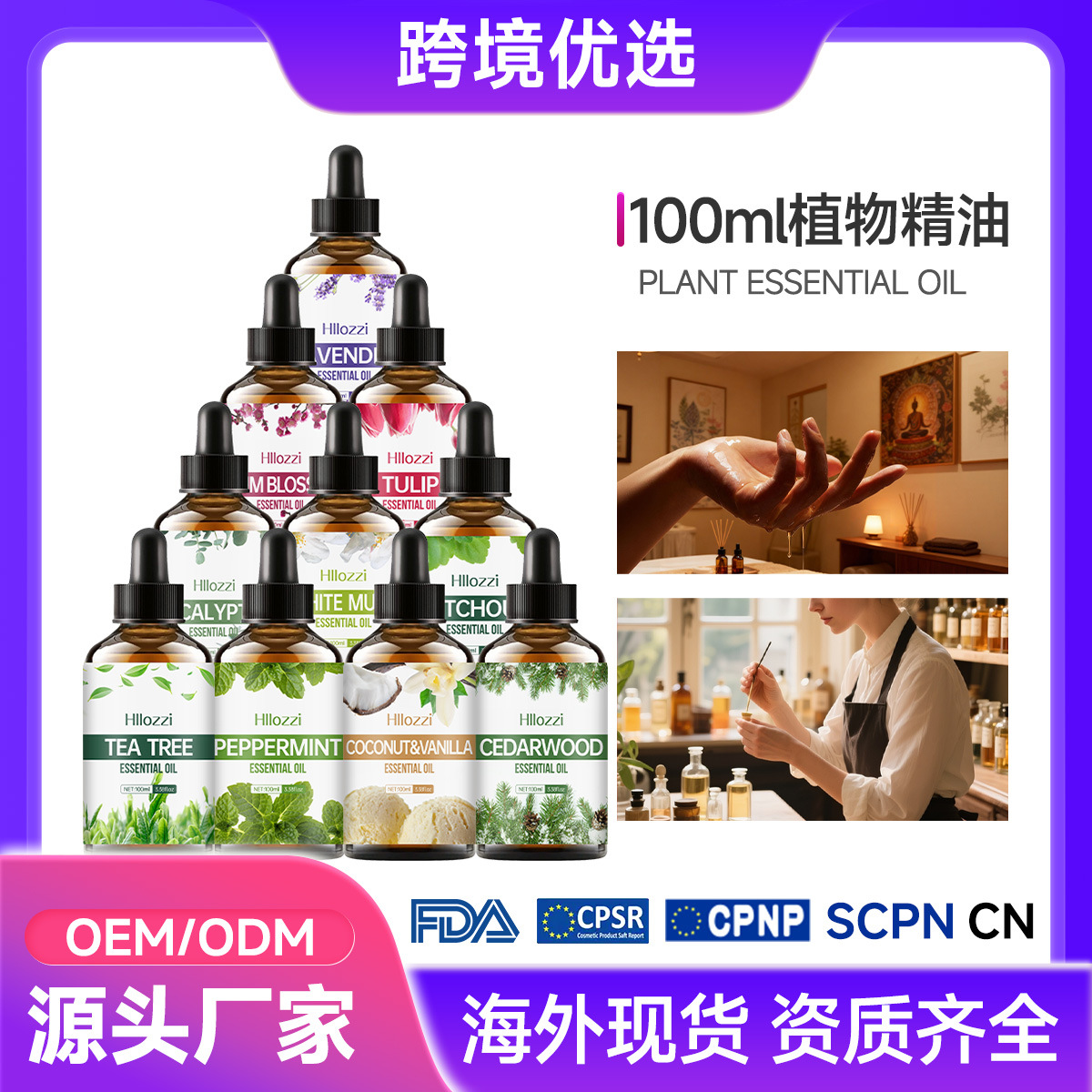 44種類の100ml植物精油マッサージオイル(顔・ボディケア用)越境販売、保湿・アロマセラピー精油