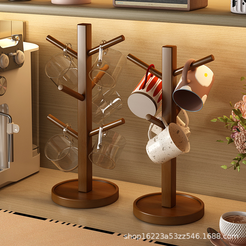 北欧实木倒挂水杯收纳架桌面家用置物架沥水咖啡茶杯马克杯挂架