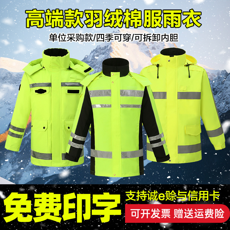防寒綿入りレインコート屋外勤務交通綿服レインコート300Dオックスフォード布リムーバブル綿反射綿服