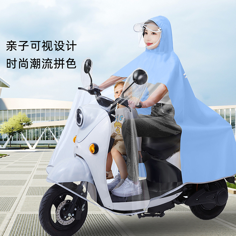 電動自転車用レインコート、親子でお揃いのトレンドアイテム、電動バイク・オートバイ用レインポンチョ、母子用全身防雨、暴風雨対策、厚手仕様。