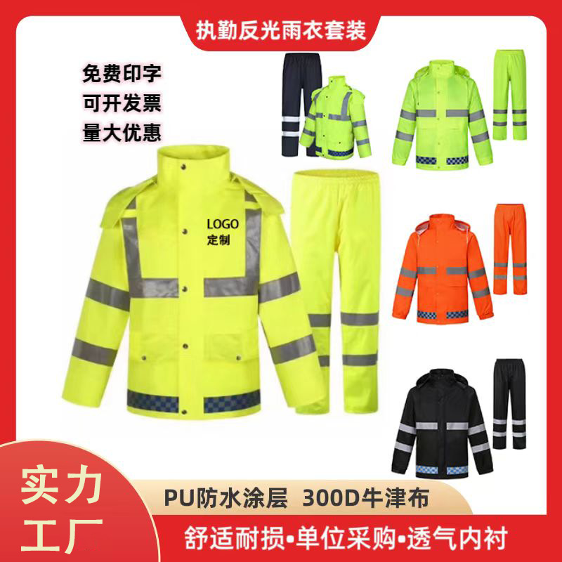 300Dオックスフォード布ハイライト反射レインコート分体レインコート屋外交通勤務労働保護救助レインコートセット