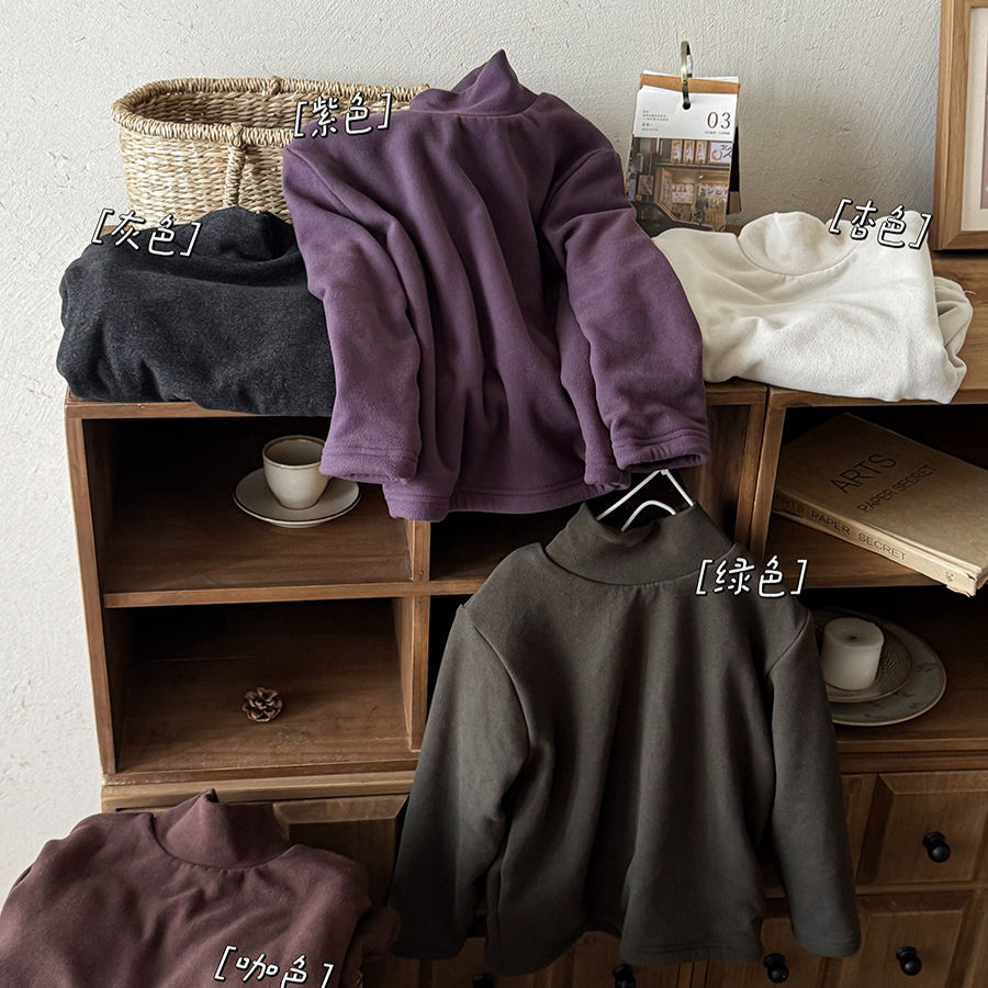 佳叶童品2025儿童冬季净色加绒高领打底衫男女宝宝加厚保暖内搭
