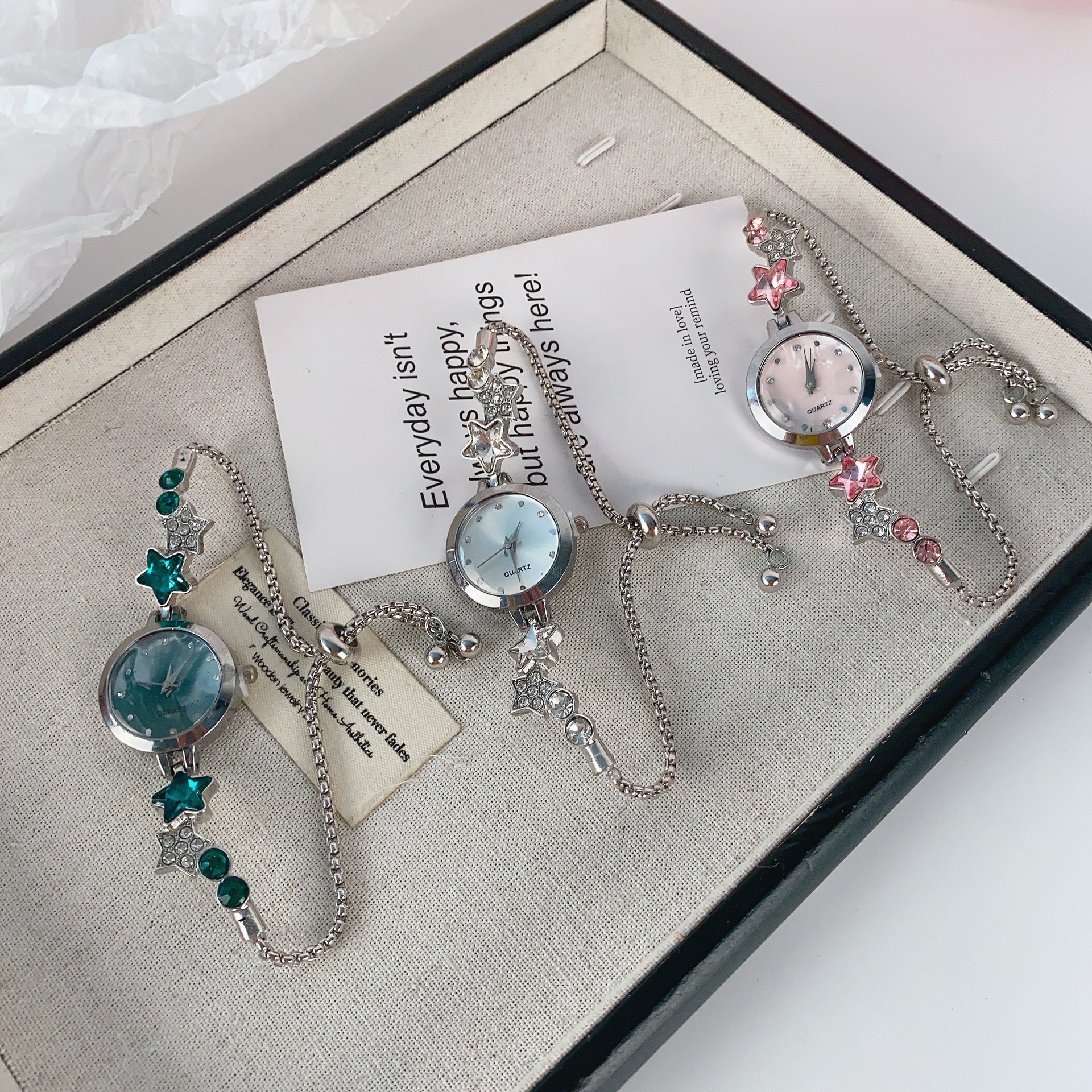 新款中古星星镶钻女士手表手链小众轻奢高颜值女生抽拉式手链表女