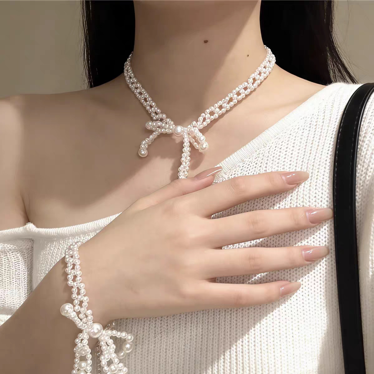 新款法式镂空珍珠蝴蝶结手链女时尚精致高级感手串轻奢风配饰饰品