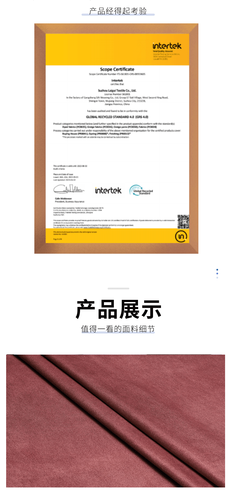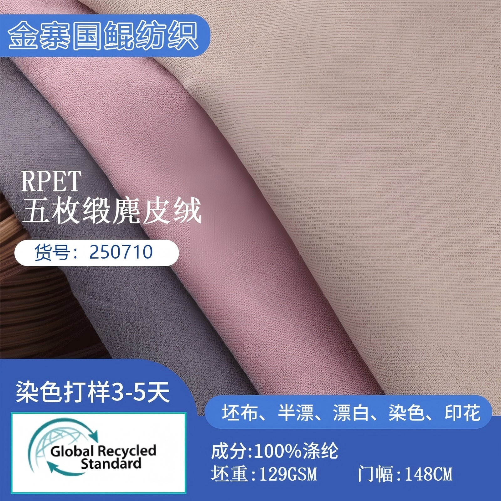 RPET再生加密五枚缎麂皮绒全涤仿皮绒布料手袋鞋材箱包礼品盒面料