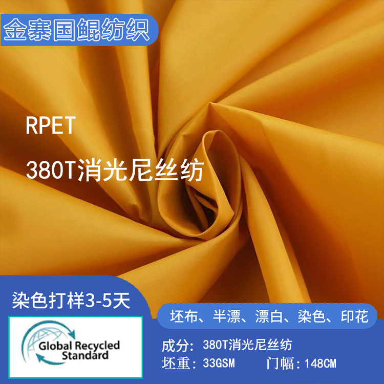 RPET再生380T消光尼丝纺 防风防绒压光秋冬轻薄羽绒服棉服面料
