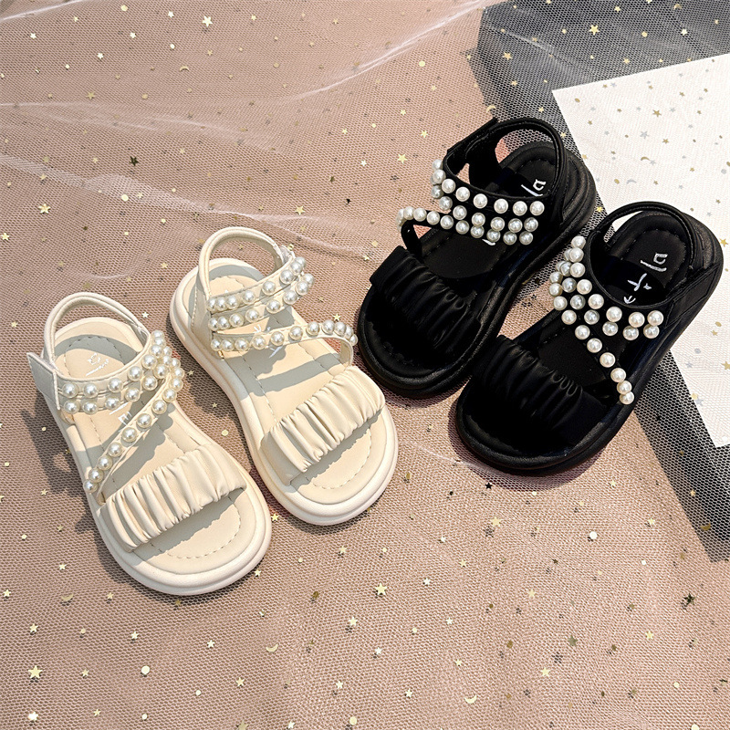 子供サンダル女の子 2025 夏の新女の子プリンセスサンダル中型および大型子供用パールソフトソールスポーツビーチシューズ