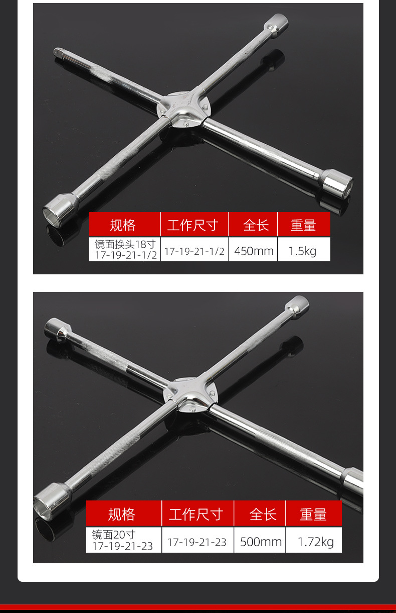 汽车轮胎十字扳手加长拆卸螺丝通用十字架套筒补胎换胎省力工具