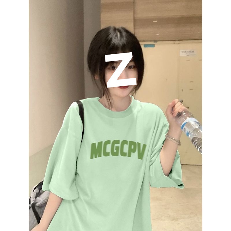 プラスサイズの女性の少し太ったmmレターVネックスリム半袖Tシャツ女性用2025新しい痩身カバーホットガールトップ女性用