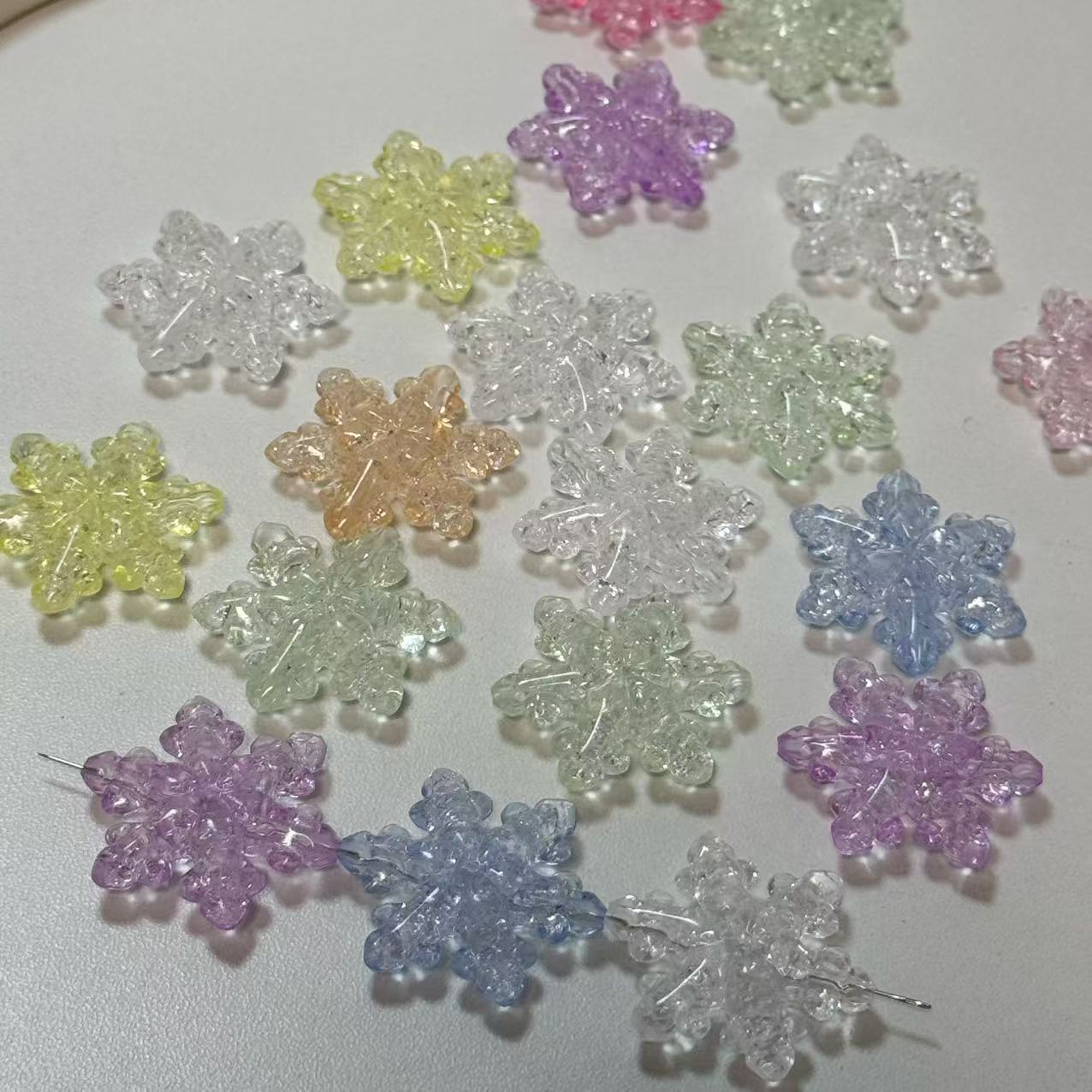 新款冰透彩色雪花带孔卡30mmdiy奶油胶滴胶手机壳谷美材料配饰