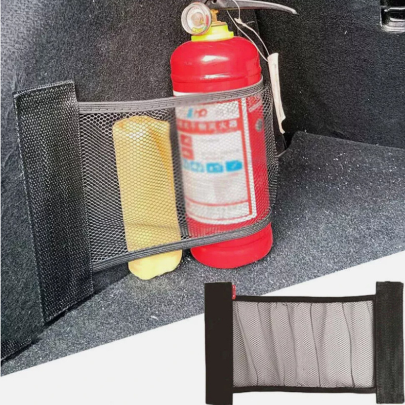 OZNO クロスボーダーカー用品トランク収納ボックス車の弾性メッシュポケット消火器固定ベルト破片収納