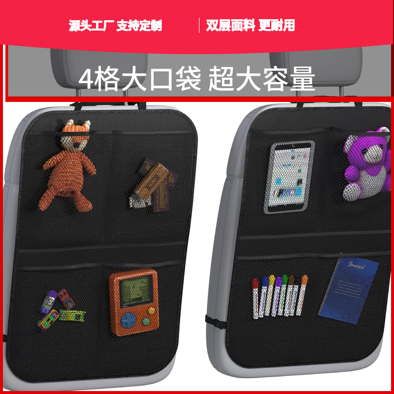 自動車背もたれ収納袋車載後部座席防キックマット付きネット布収納袋車内シート保護神器