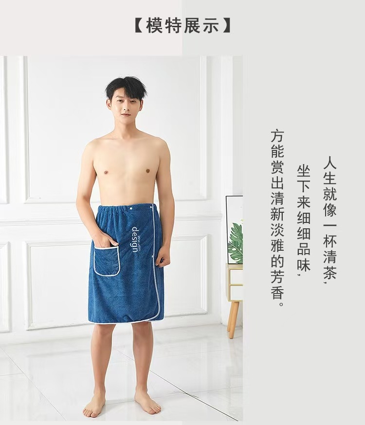 浴裙男士可裹珊瑚绒批发易吸水可调节纽扣松紧刺绣居家浴袍浴袍式