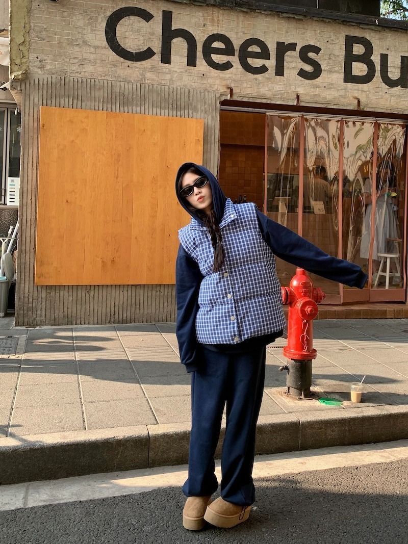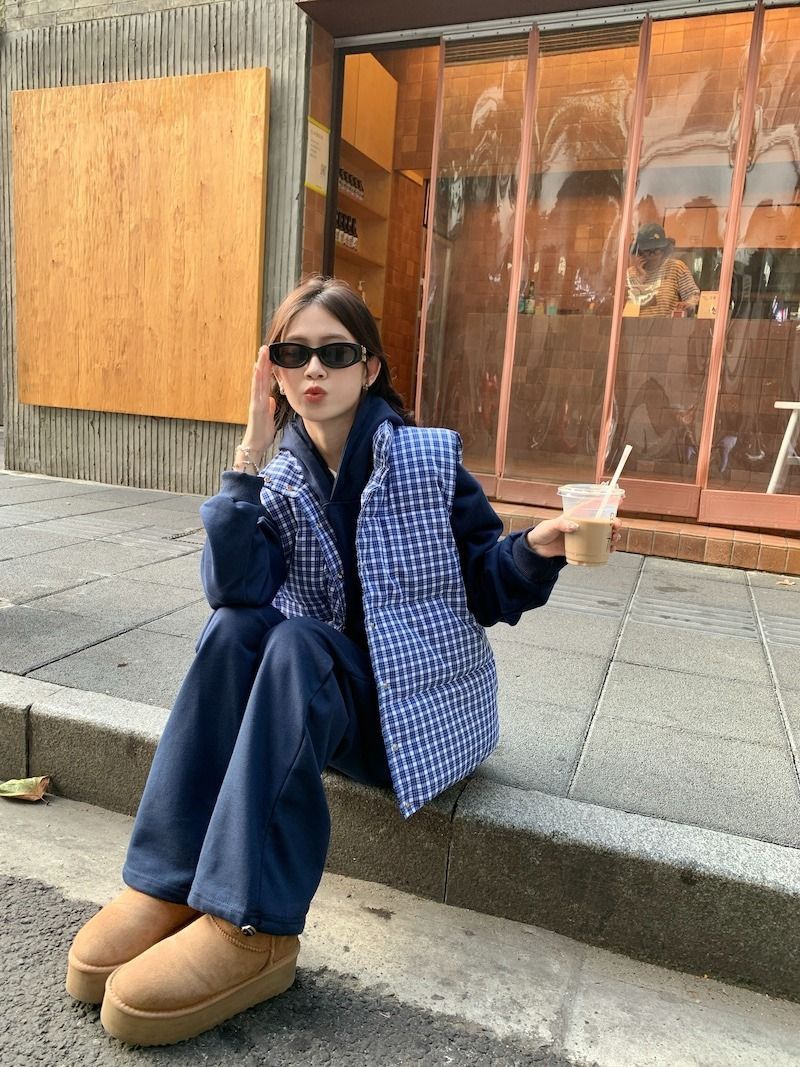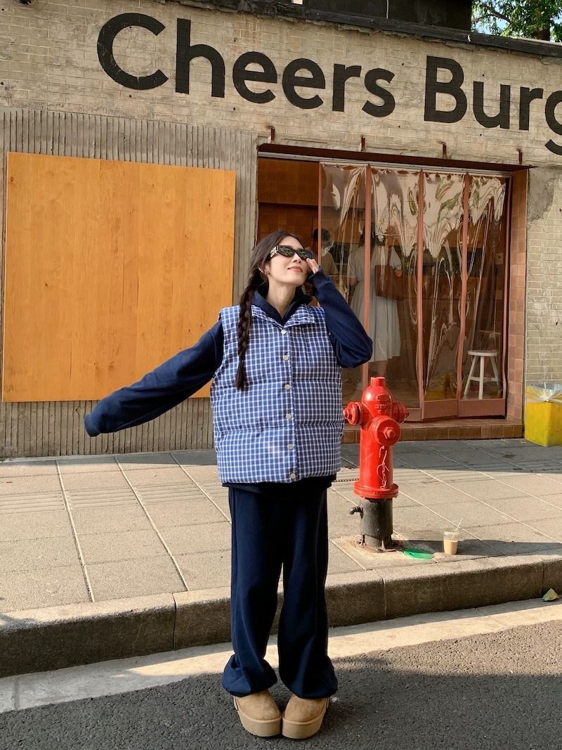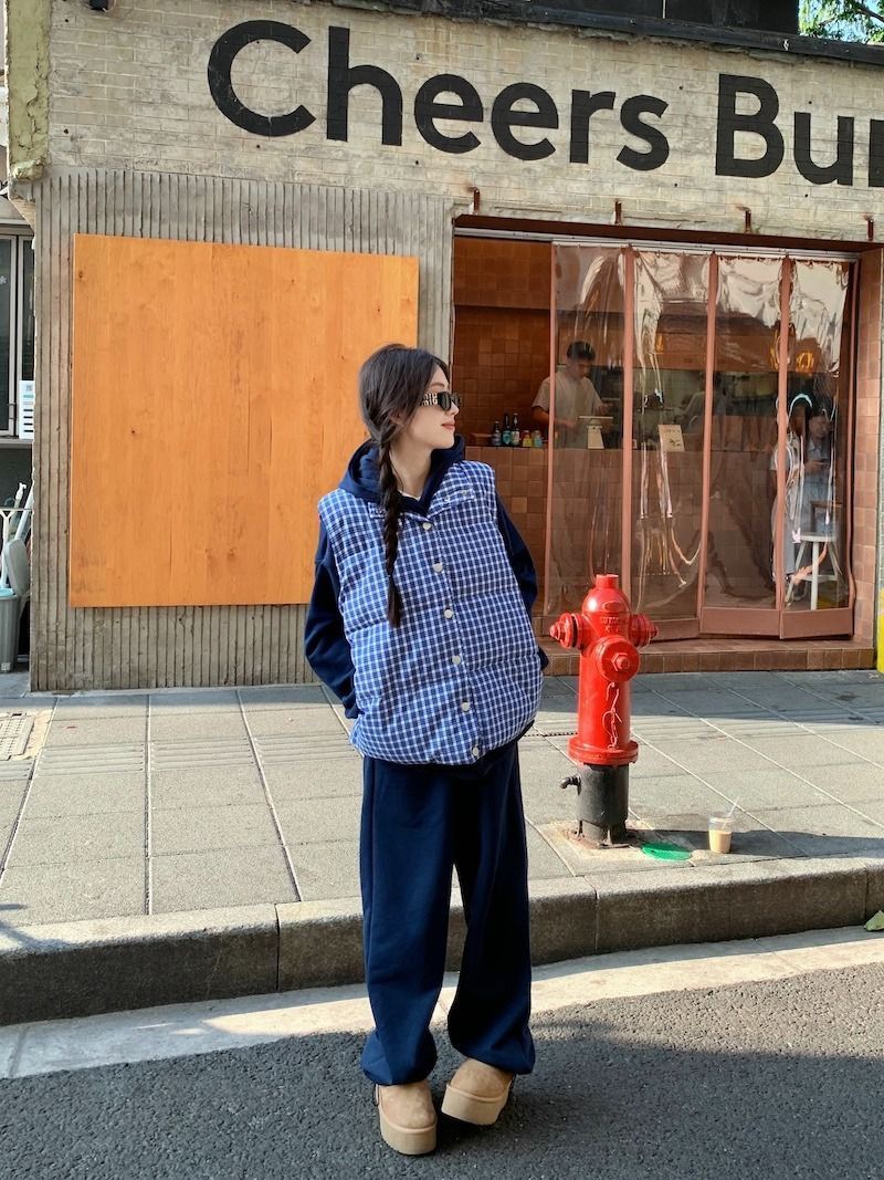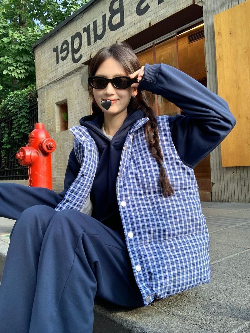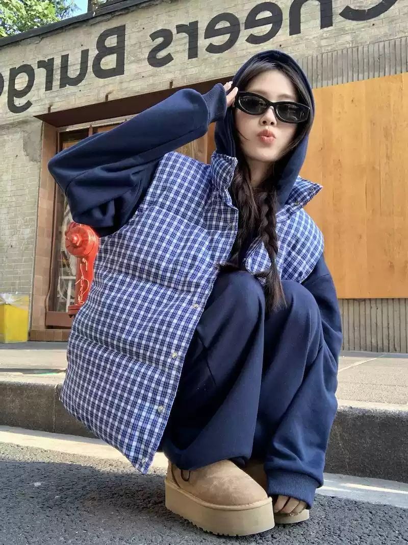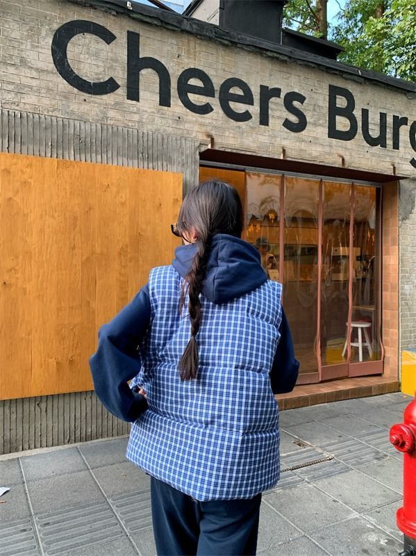2025新款棉服马甲女美式蓝格子马夹叠穿宽松韩版冬季加厚保暖外套