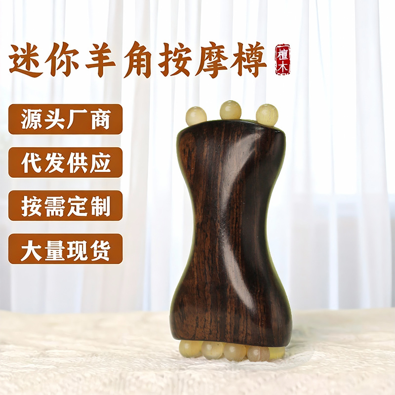 紫光檀羊角迷你金珠樽按摩梳拔筋棒专用女士便携小随身梳子定制