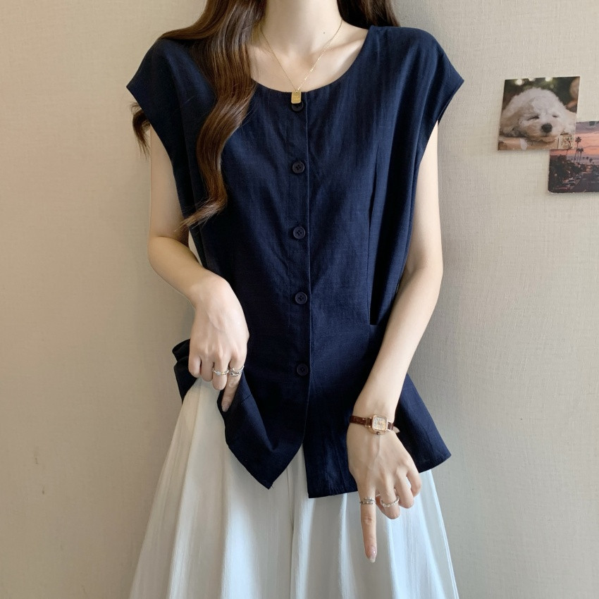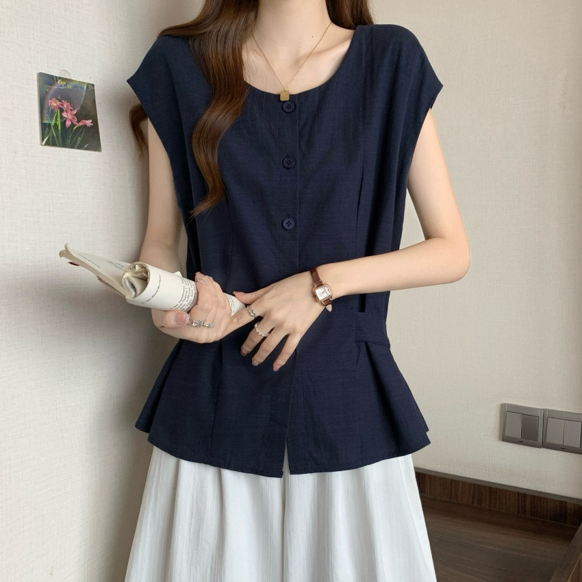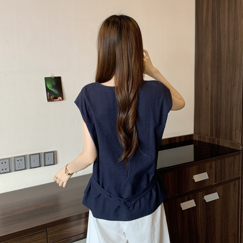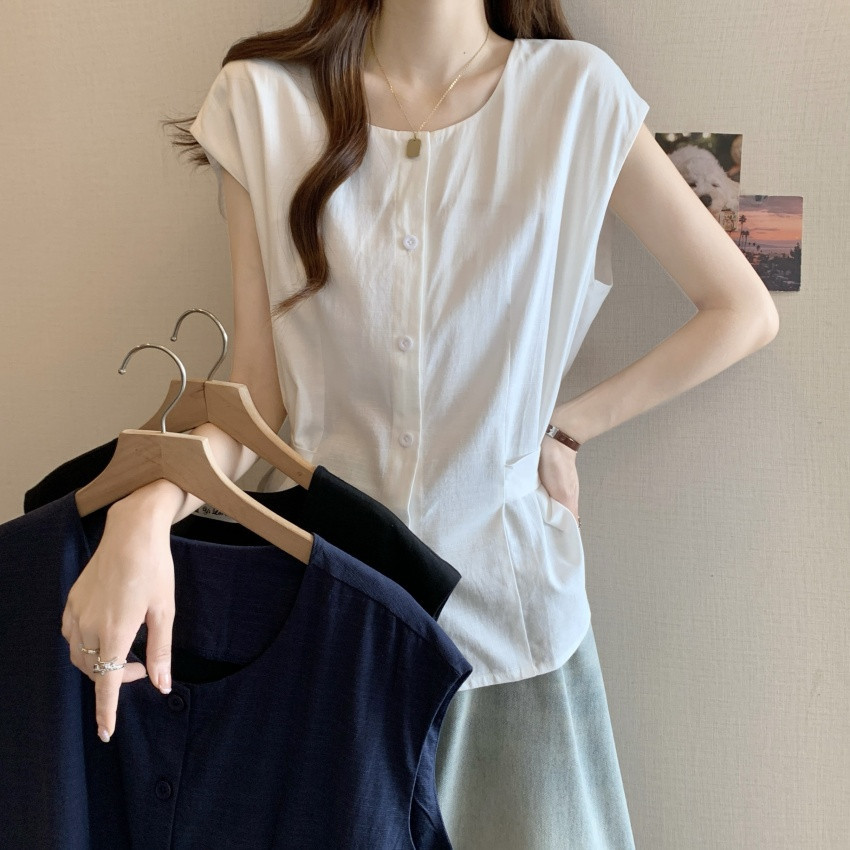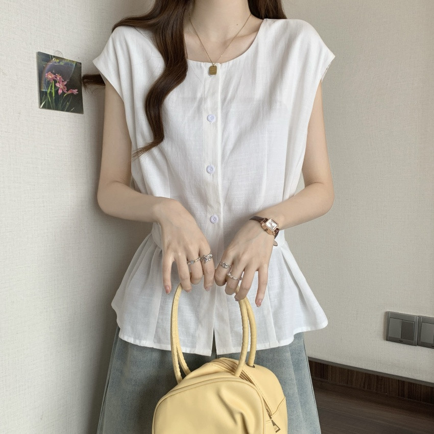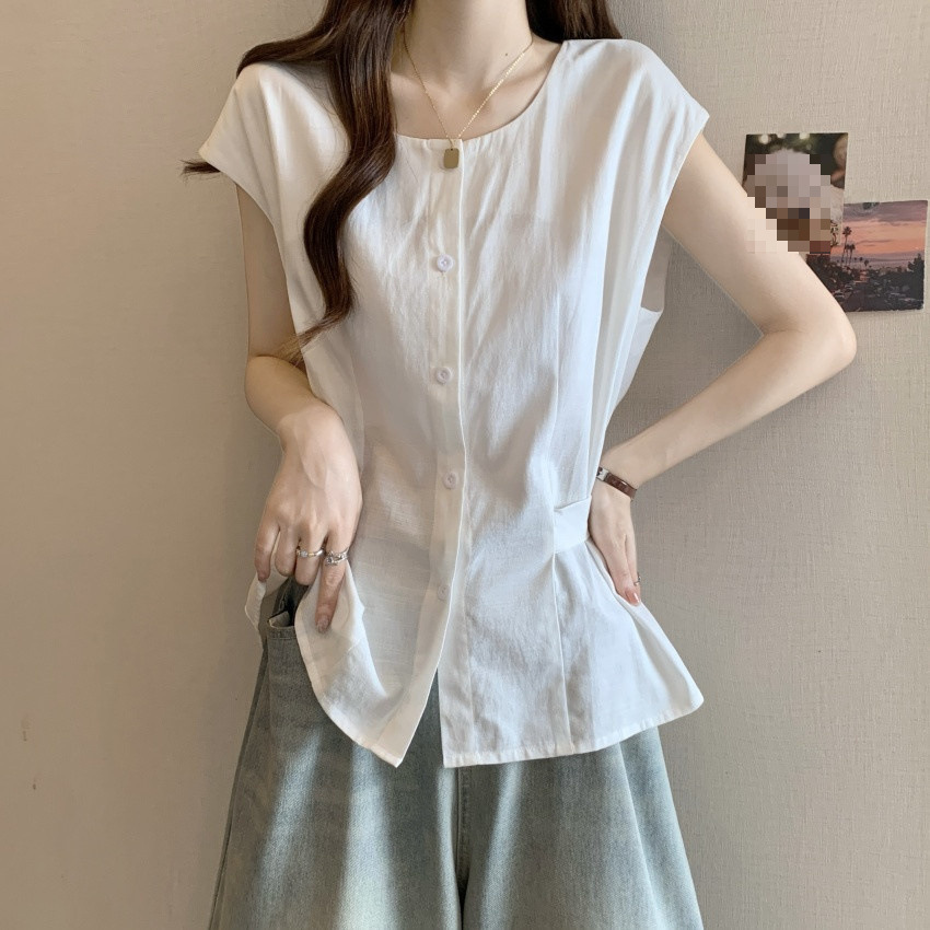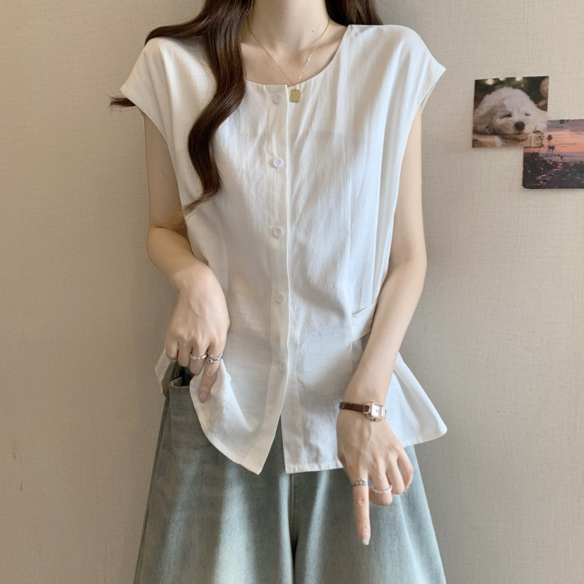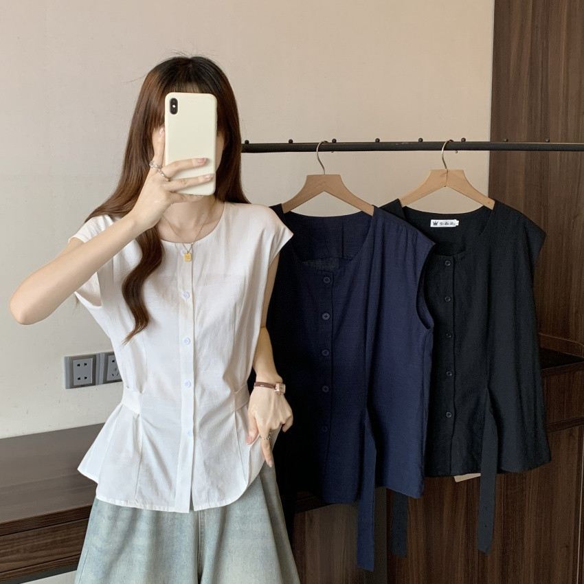 K4H 半袖シャツ女性のための夏の 2025 新しいハイエンドライト高級ハイエンドウエスト痩身コットンとリネントップ