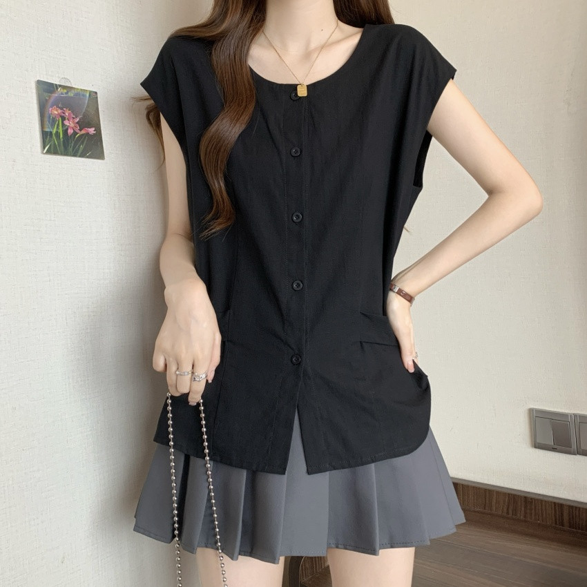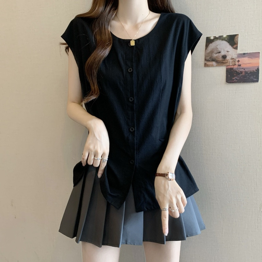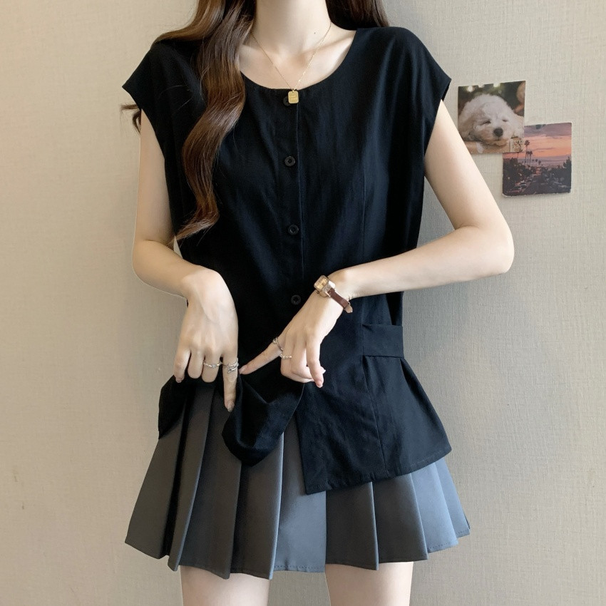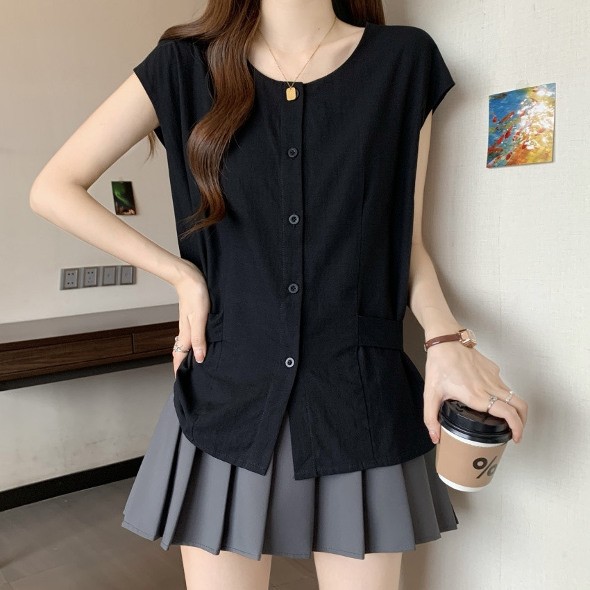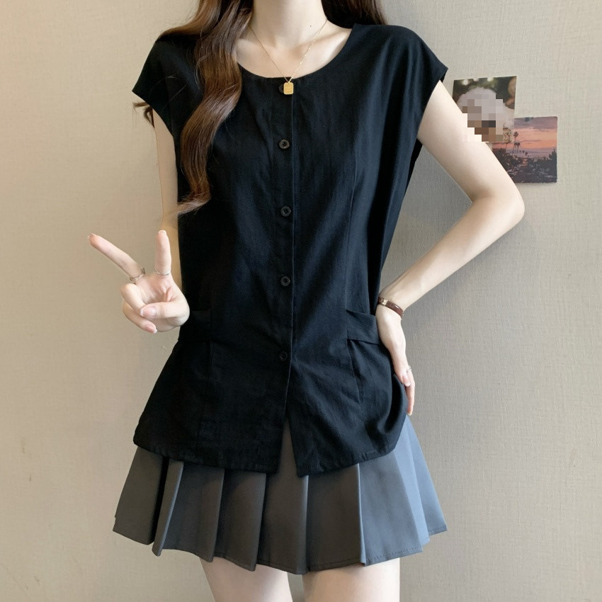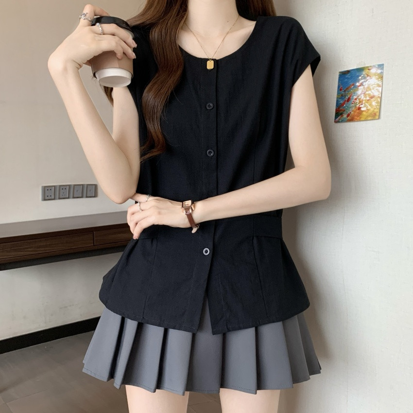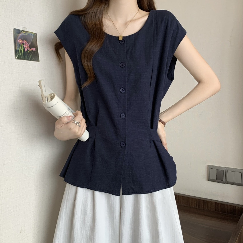 K4H 半袖シャツ女性のための夏の 2025 新しいハイエンドライト高級ハイエンドウエスト痩身コットンとリネントップ
