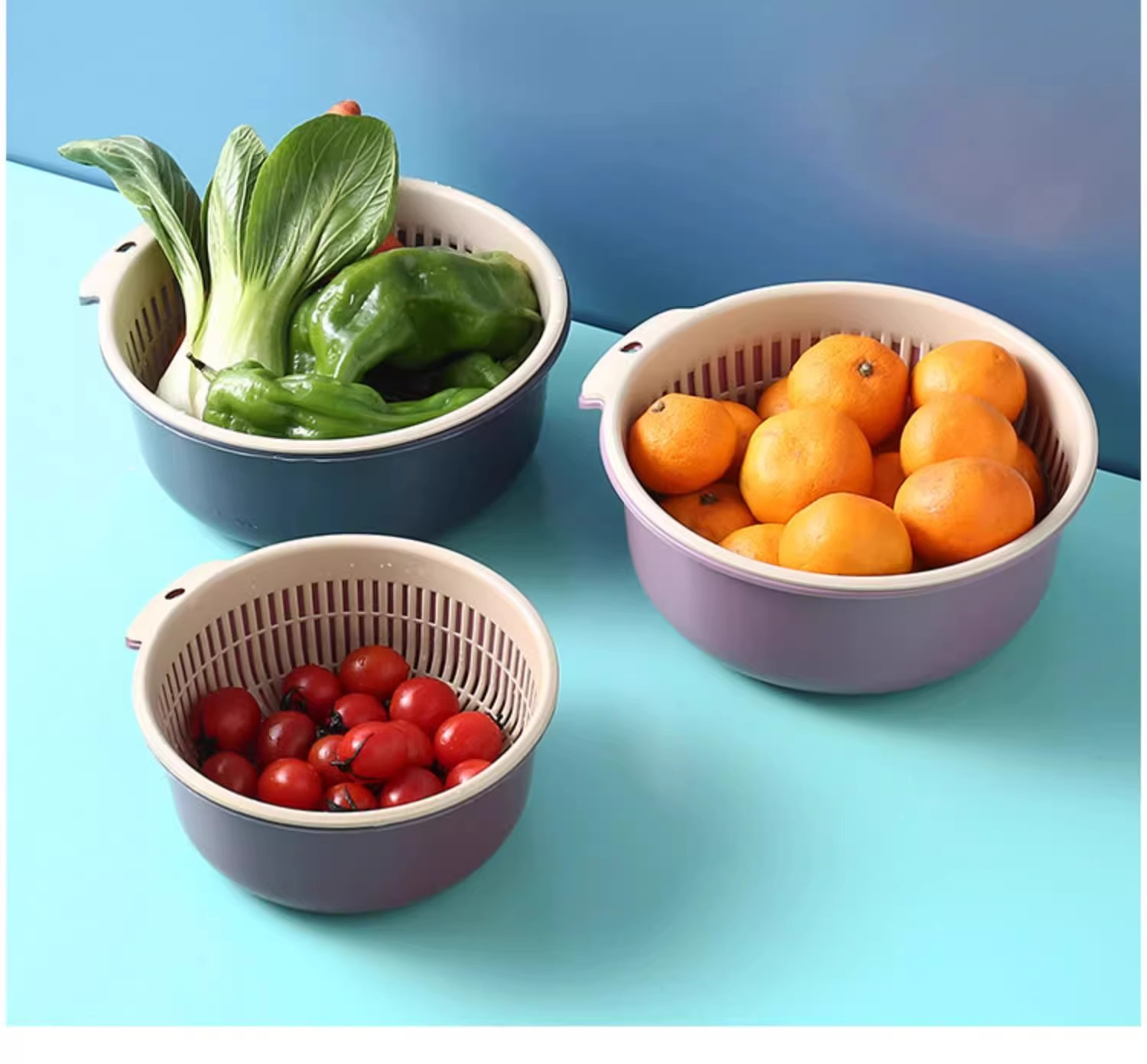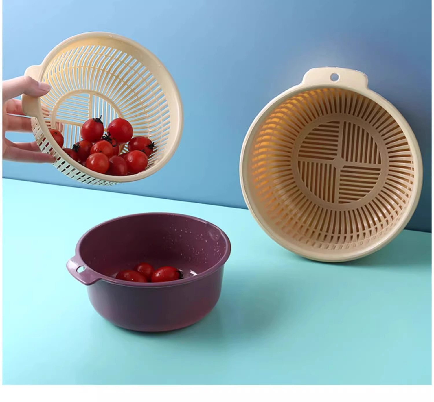 プラスチック二層フルーツ野菜洗いバスケット、家庭用キッチン用品、厚いプラスチック二層排水バスケット