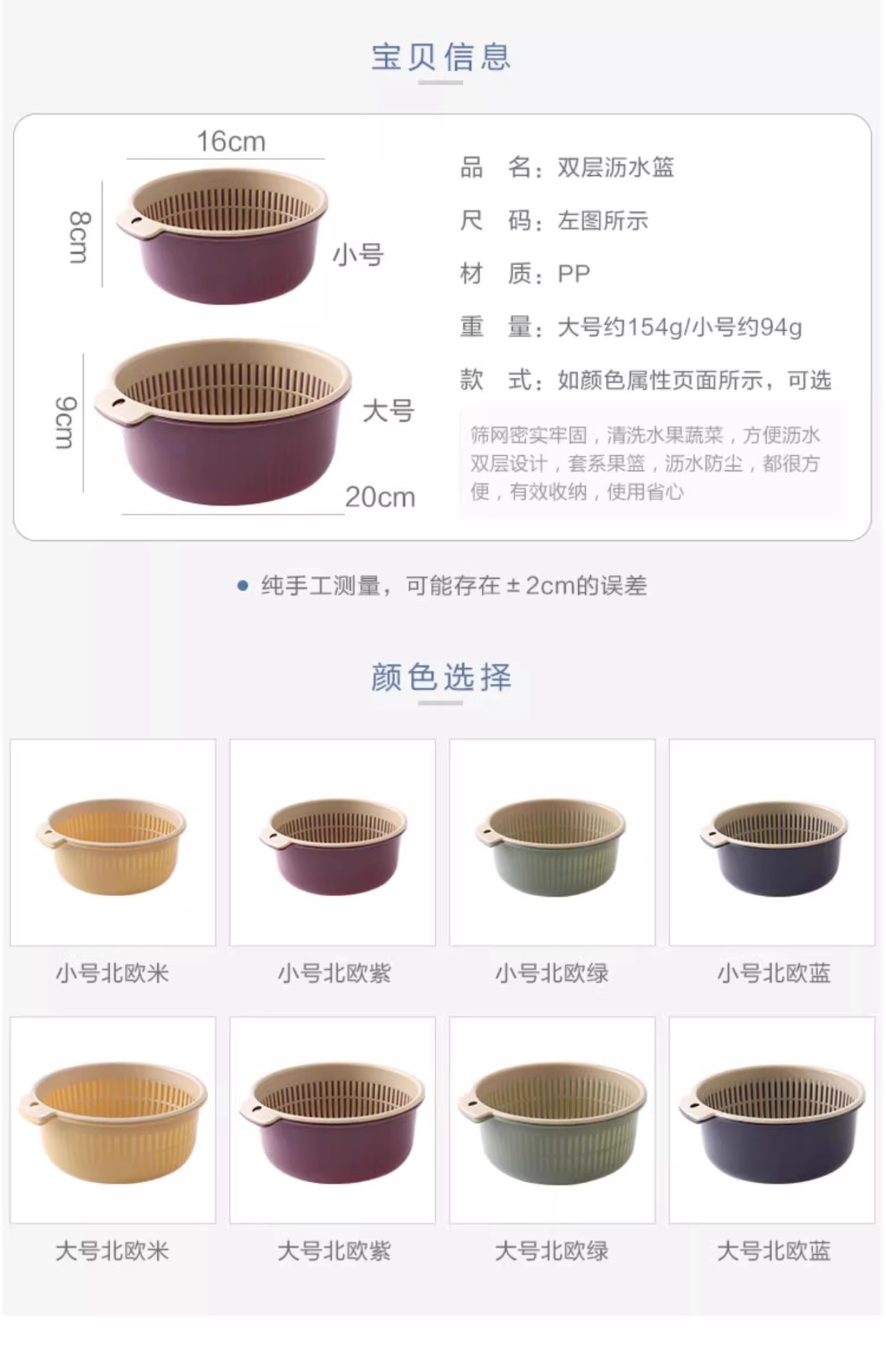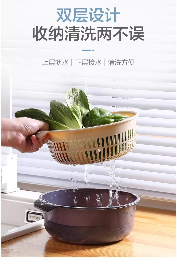 双层加厚沥水篮蔬菜水果洗菜收纳筐多功能家用厨房必备神器沥干