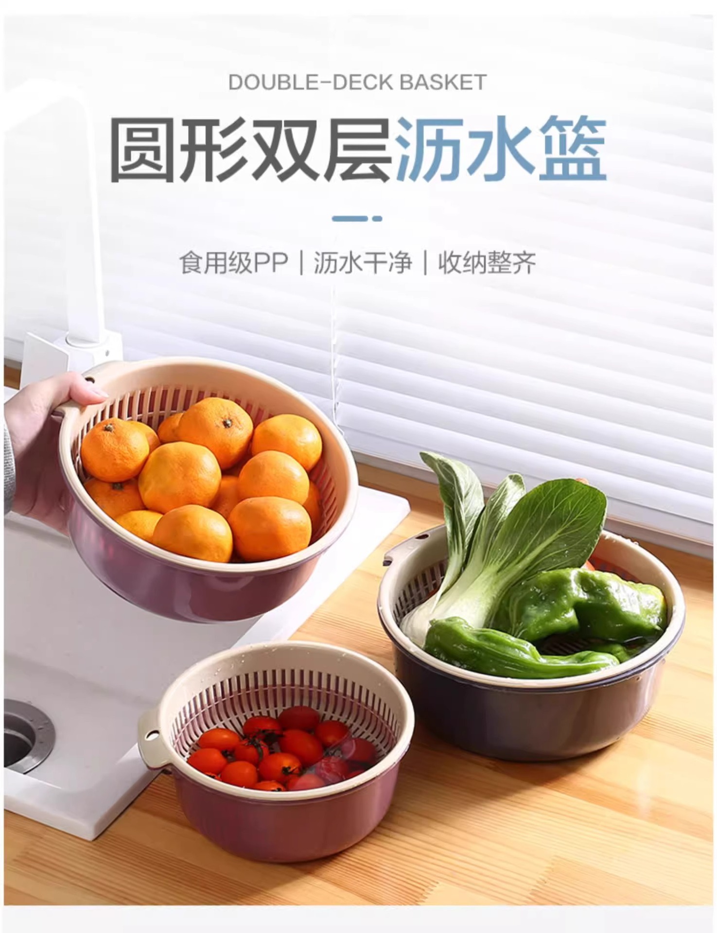 【特大厚さ二重水たまりバスケット】台所野菜バスケット果物バスケット円形二重水たまりバスケット卸売り