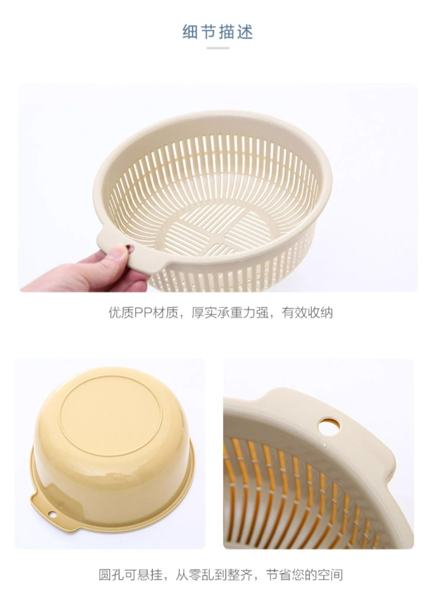 二層家庭用水たまりバスケットキッチン円形フルーツバスケット家庭用収納ろ過水洗浄ボウルシンプルなクリエイティブ野菜バスケット