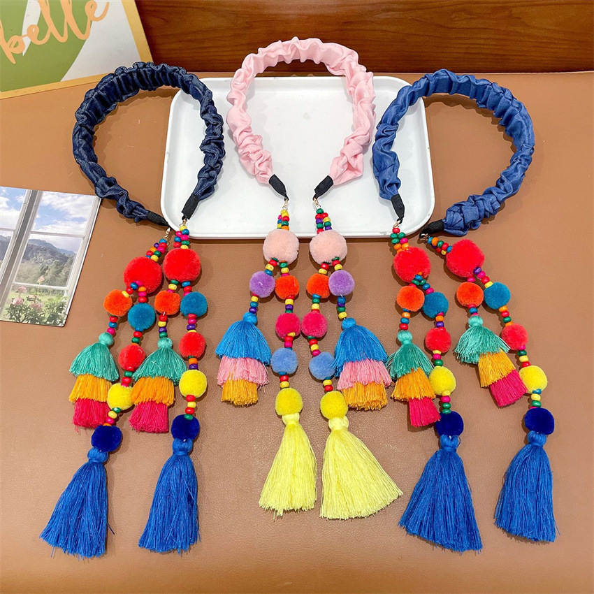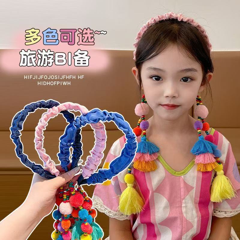 儿童2025年新款复古压发头箍发带女童民族风宝宝毛球流苏发箍头饰
