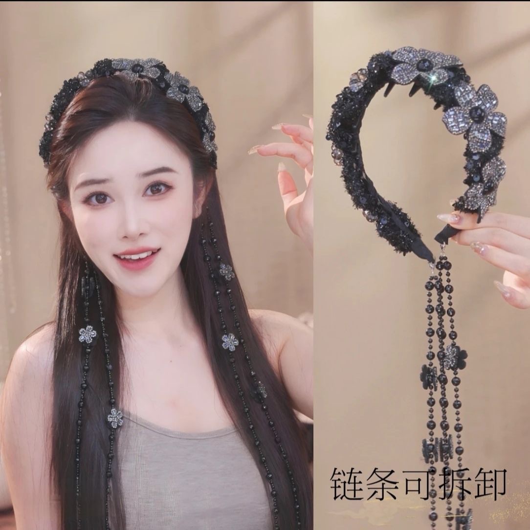 野心家【水墨青染】新中式复古串珠流苏发箍民族风假耳环头箍发卡