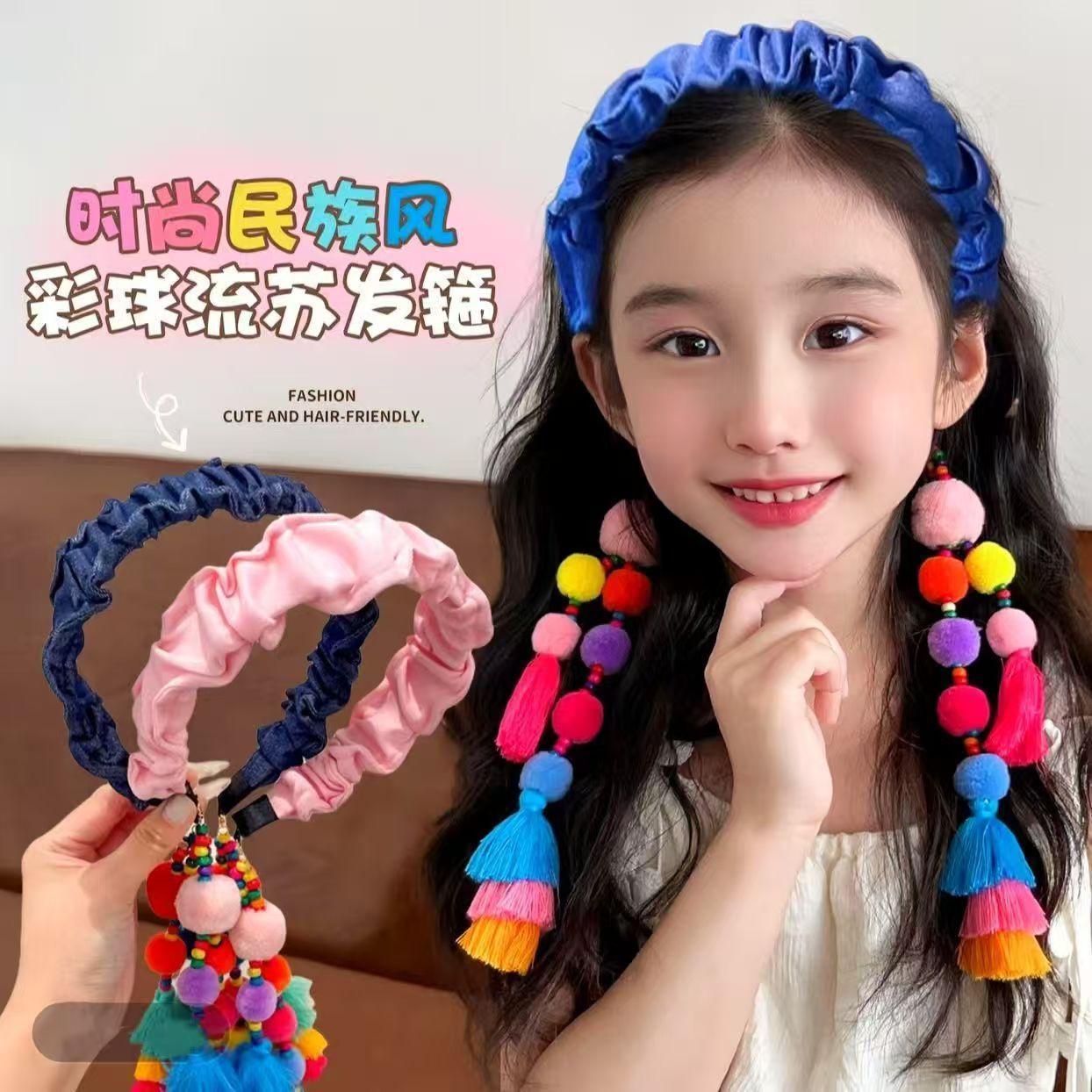民族风流苏发箍儿童中国风卖萌拍照装扮发卡活动表演头饰头箍批发