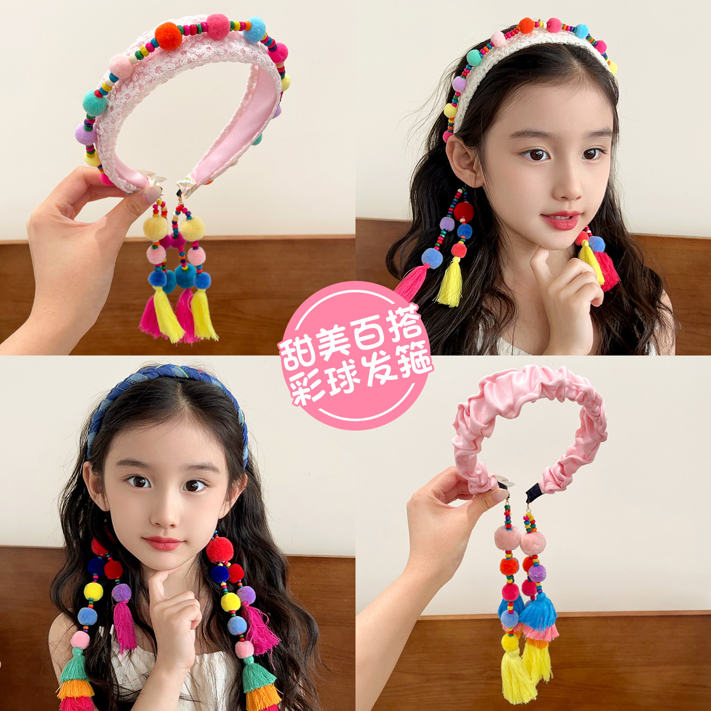 儿童民族风发箍女童2025新款彩色毛球发卡小女孩压发头箍发饰头饰