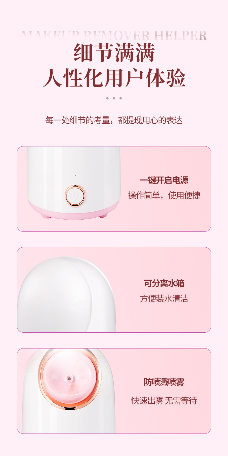 我们是一家集研发生产销售一体的工厂,自有注塑机,装配生产线。欢迎验厂。长期库存大量半成品,出货快。中英文包装。有10年蒸脸仪开发生产经验。研发生产的蒸脸仪有防喷热水,喷雾大。内部环保材料气味小,喷口角度高低可调,方便实用。产品质量保证欢迎定制。