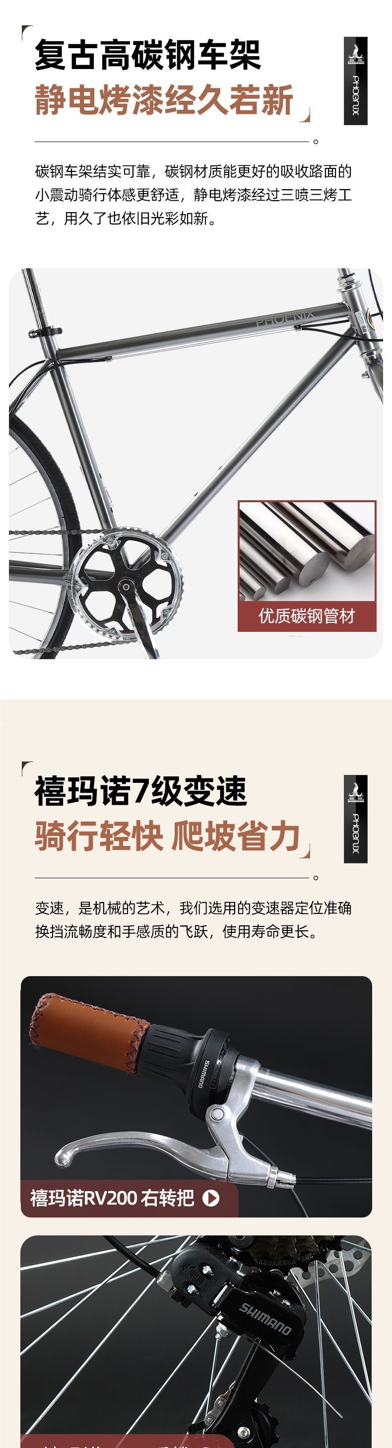 フェニックス FR202 ロードバイク シマ 7速 キャンパス 新型 高価値 通勤 レトロ自転車