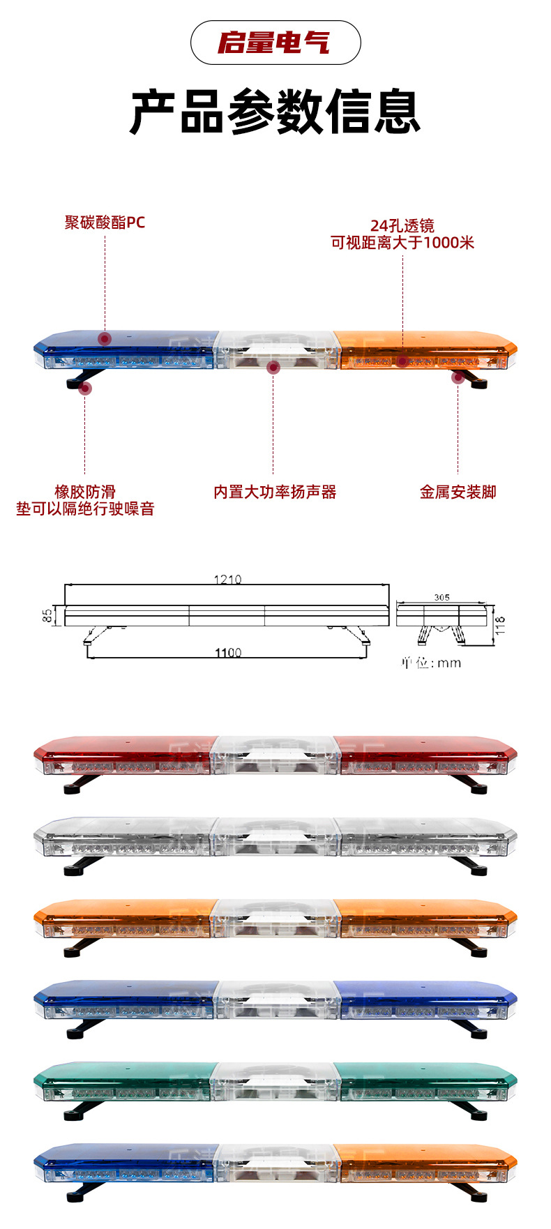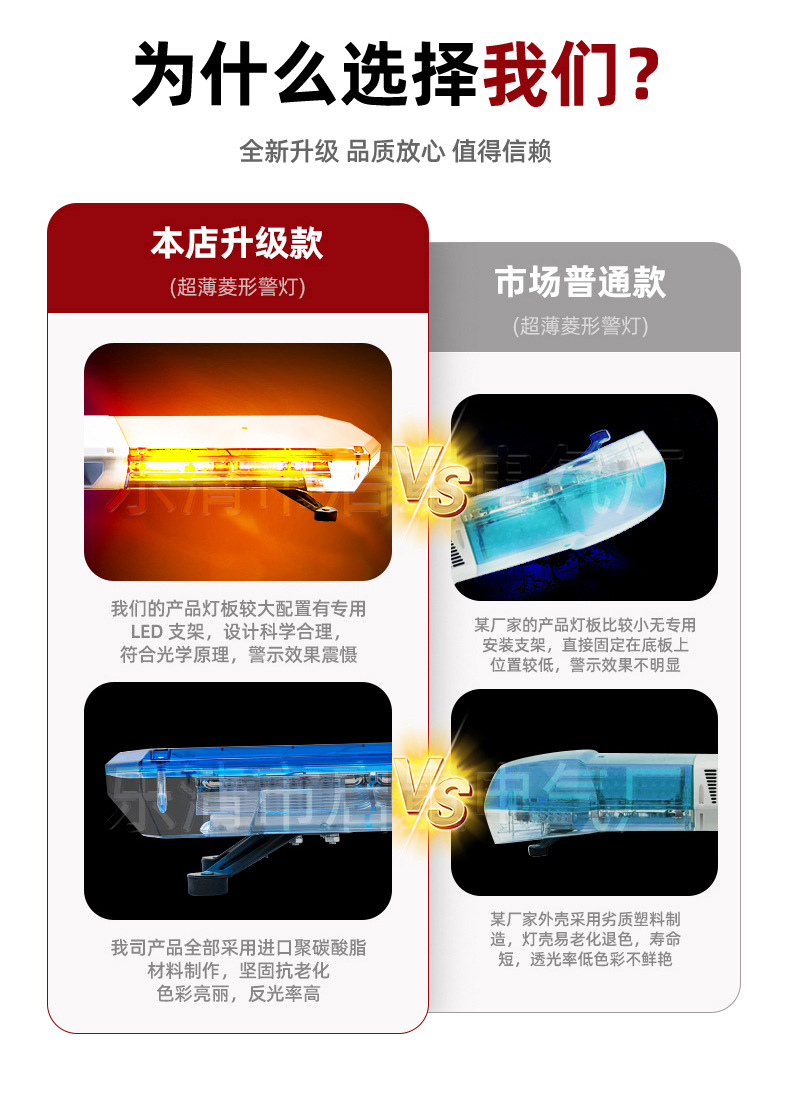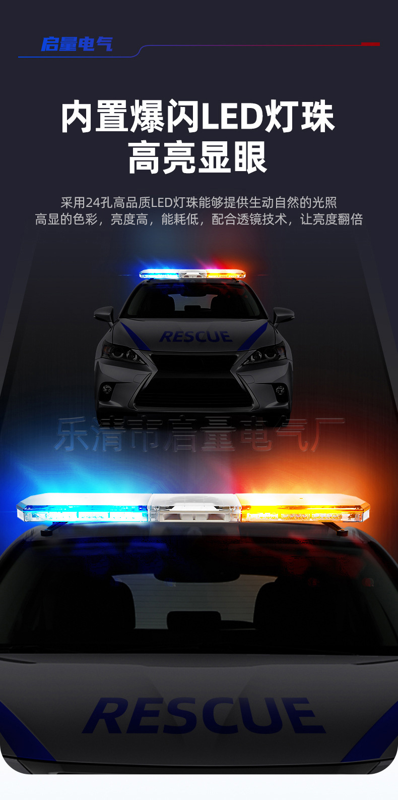 跨境出口工程车长排警示灯led黄红蓝色长条灯清障救援爆闪报警灯