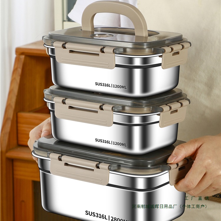 ランチボックス 316 ステンレス鋼食品グレードの鮮度保持ボックス蓋付き密封ボックスランチボックス冷蔵庫収納ボックス弁当箱