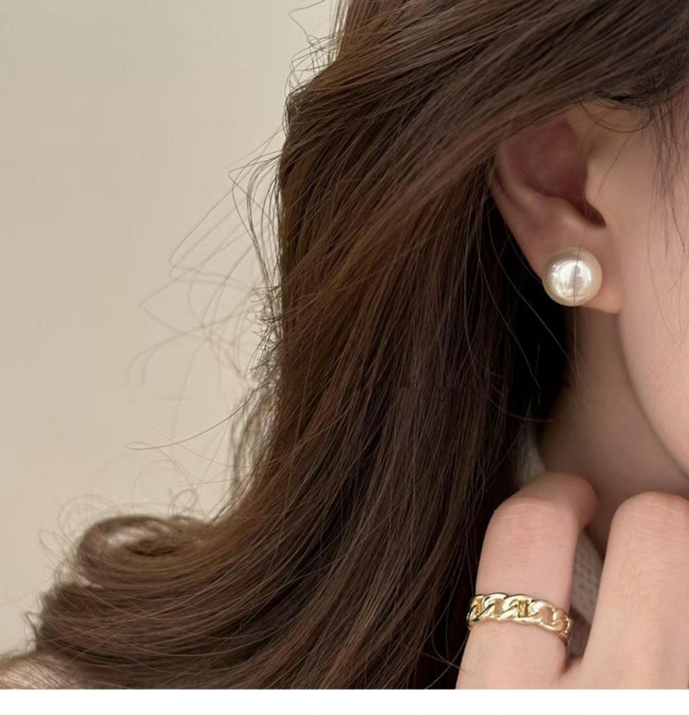 夸张显脸小复古小香风20mm大珍珠耳钉名媛高级感个性港风贝珠耳饰