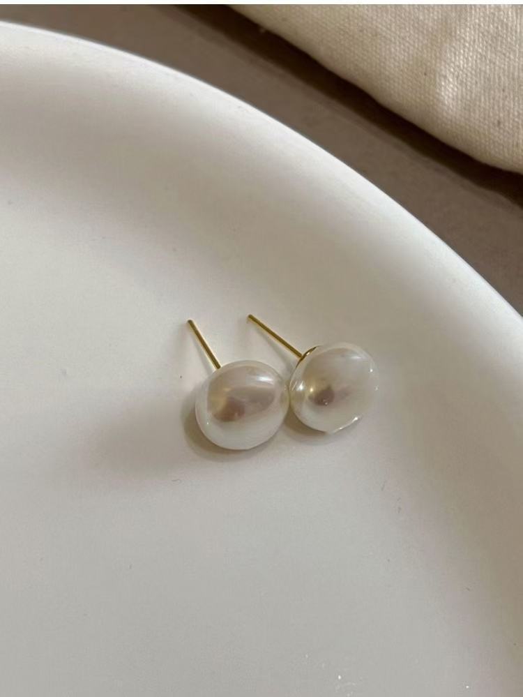 法式复古精致高级感馒头扁圆珍珠耳环女气质温柔小众轻奢百搭耳钉