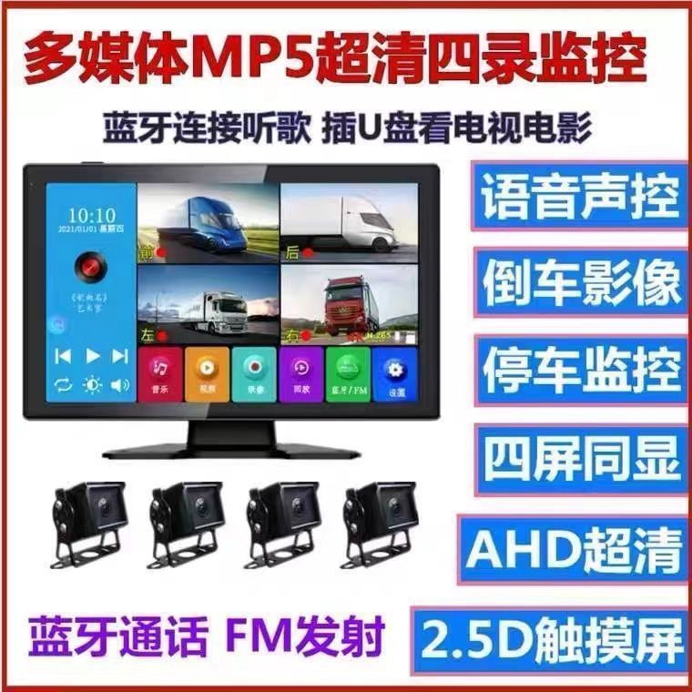 四路货车收割机12/24V通用记录仪挂车四录高清摄像头倒影像显示屏