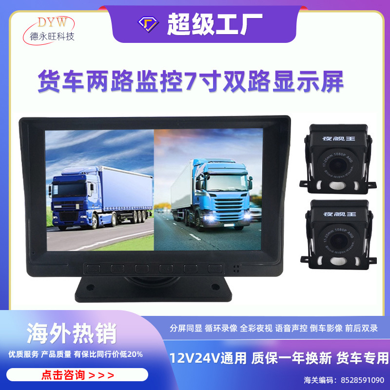 トラック二路監視ドライブレコーダ7インチ前後ダブル録画ディスプレイバスバック映像12v 24v