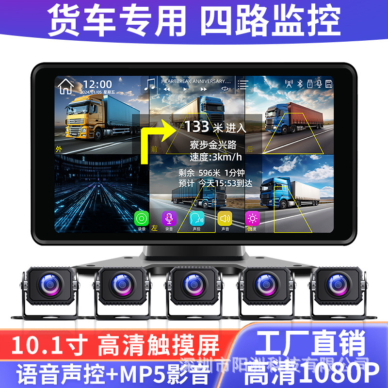 货车四路监控记录仪12/24V影像收割机半挂车高清倒车影像夜视影像