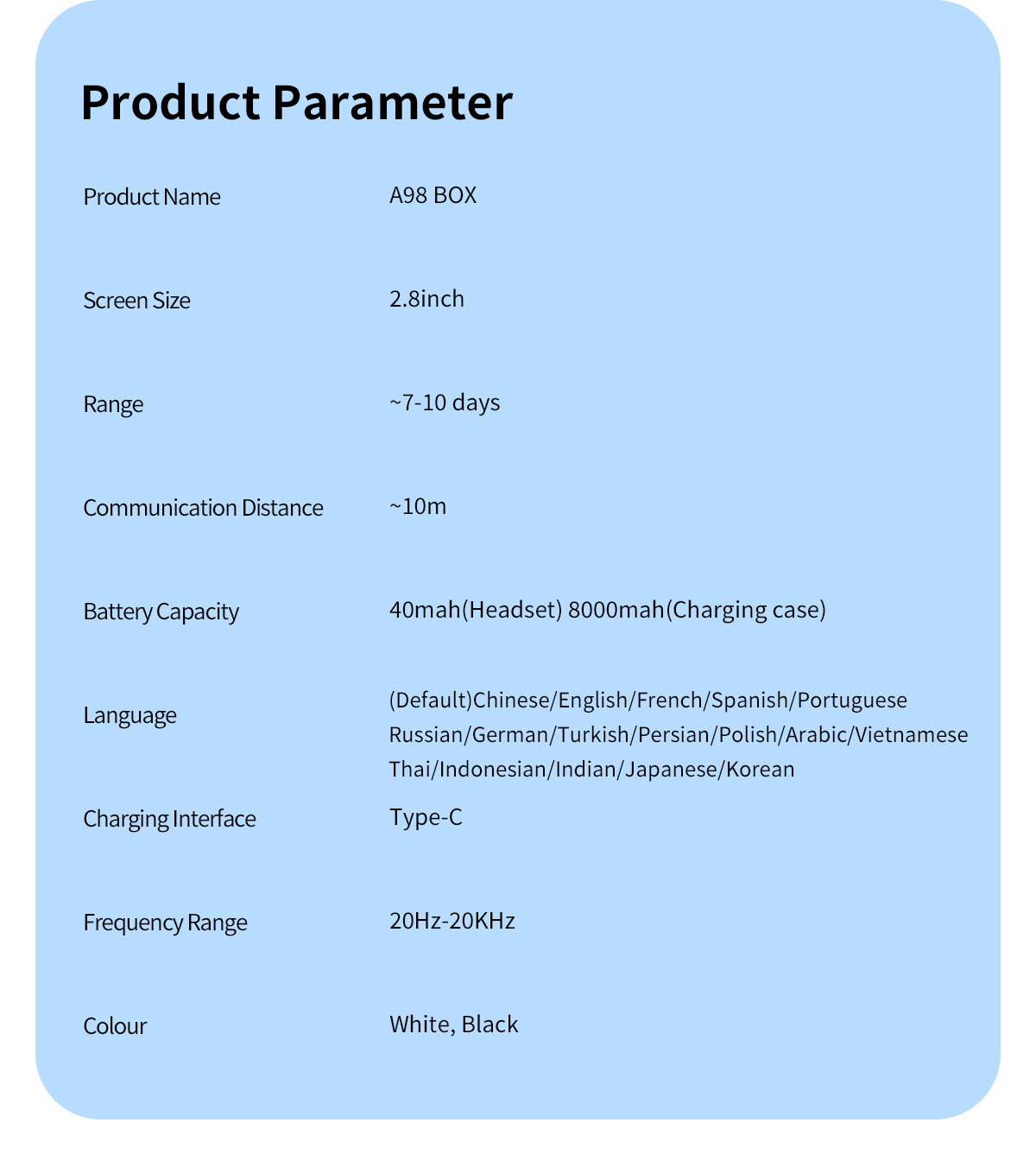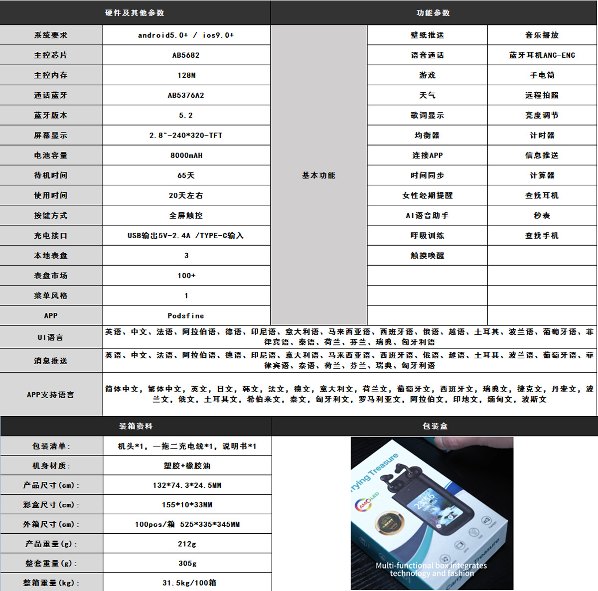 新款跨境TF20BOX升级版A98BOX 耳机 充电宝 2.8多媒体屏三合一ANC