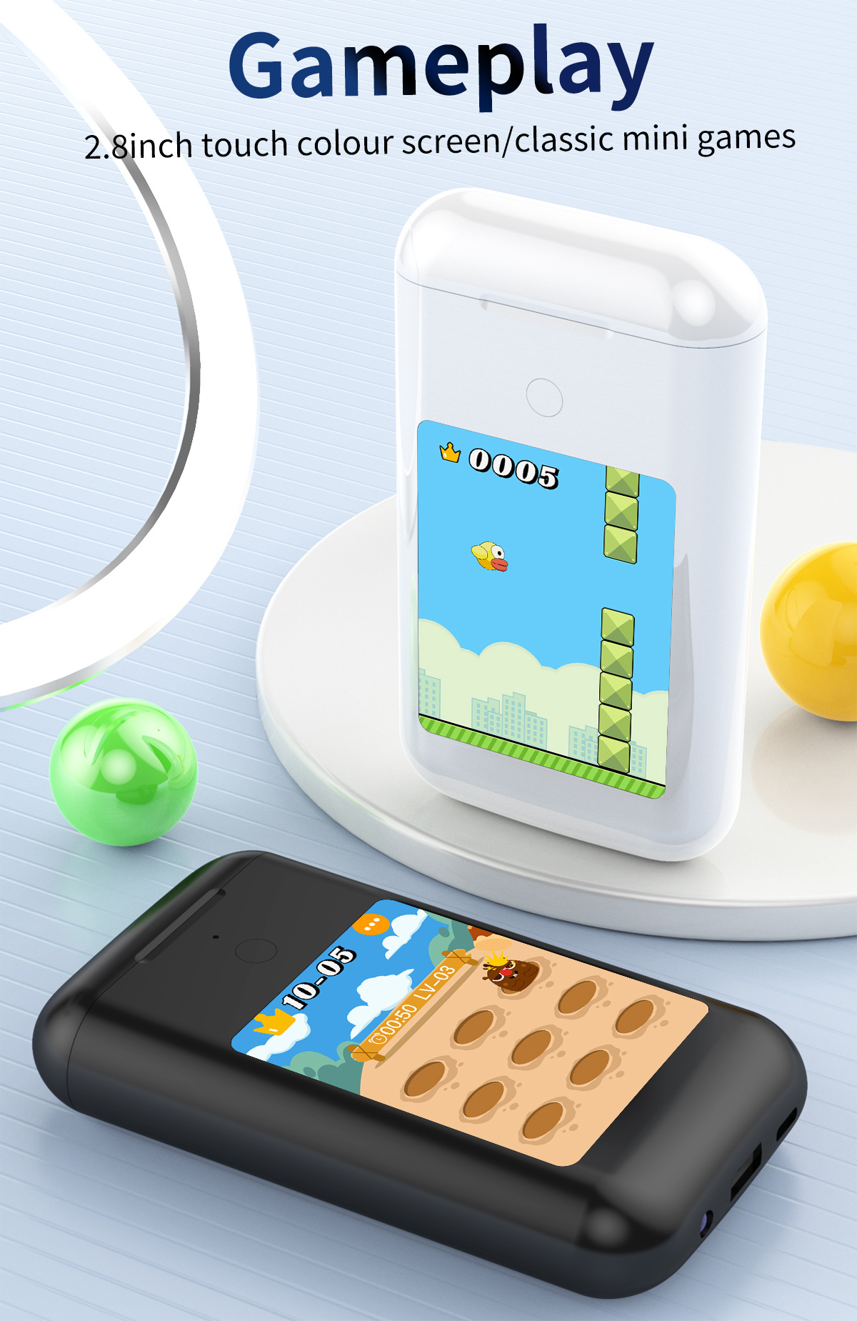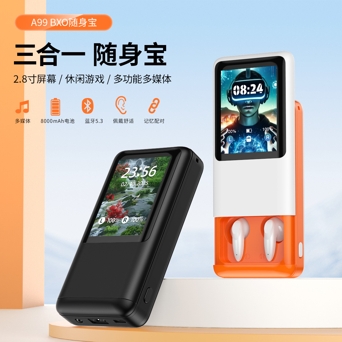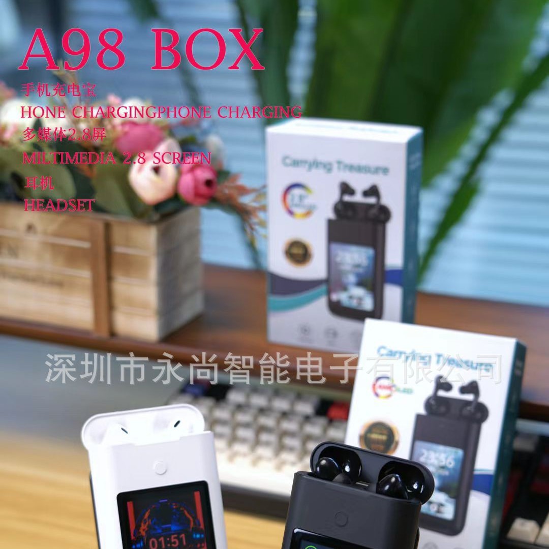 A98box充电宝 TWS无线蓝牙耳机 2.8寸多媒体显示屏3合1 休闲游戏