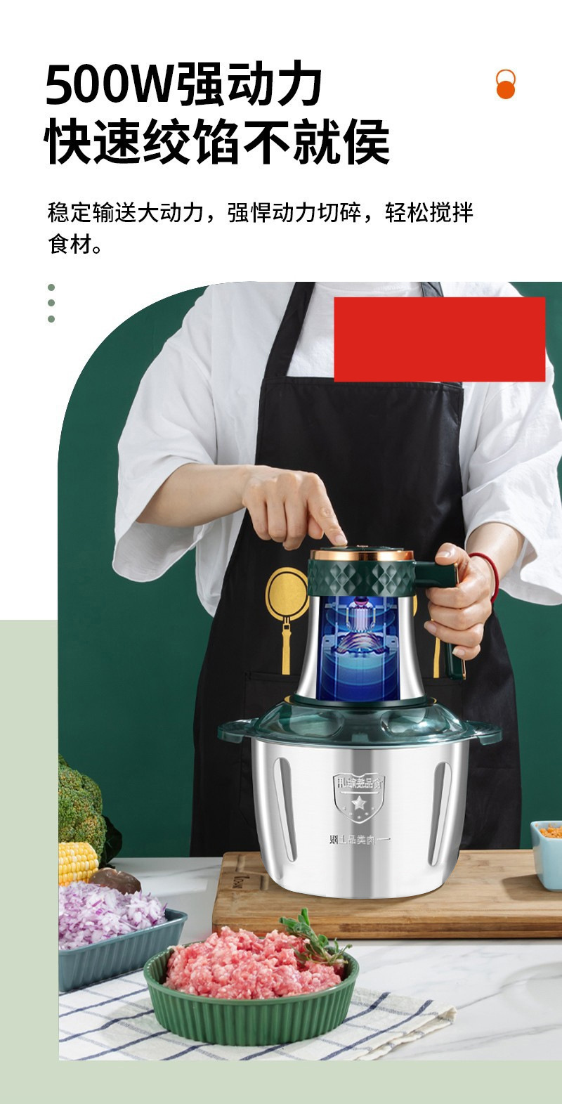 【代发】3升西稻绞肉机不锈钢大容量家用辅食全自动料理机绞肉机