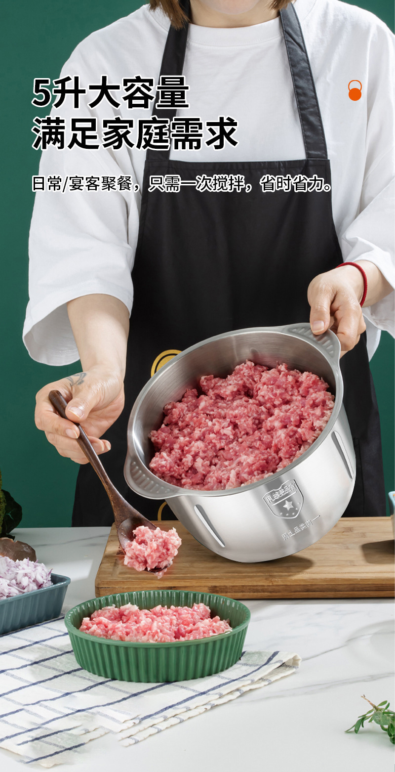 【一件代発】半球5リットル5段階家庭用生地捏ね・野菜刻み調理機ステンレス多機能ミートグラインダー