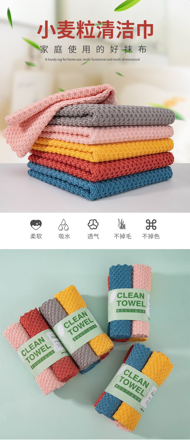 跨境盒装5色家务厨房清洁巾超细纤维吸水懒人抹布擦桌洗车百洁布