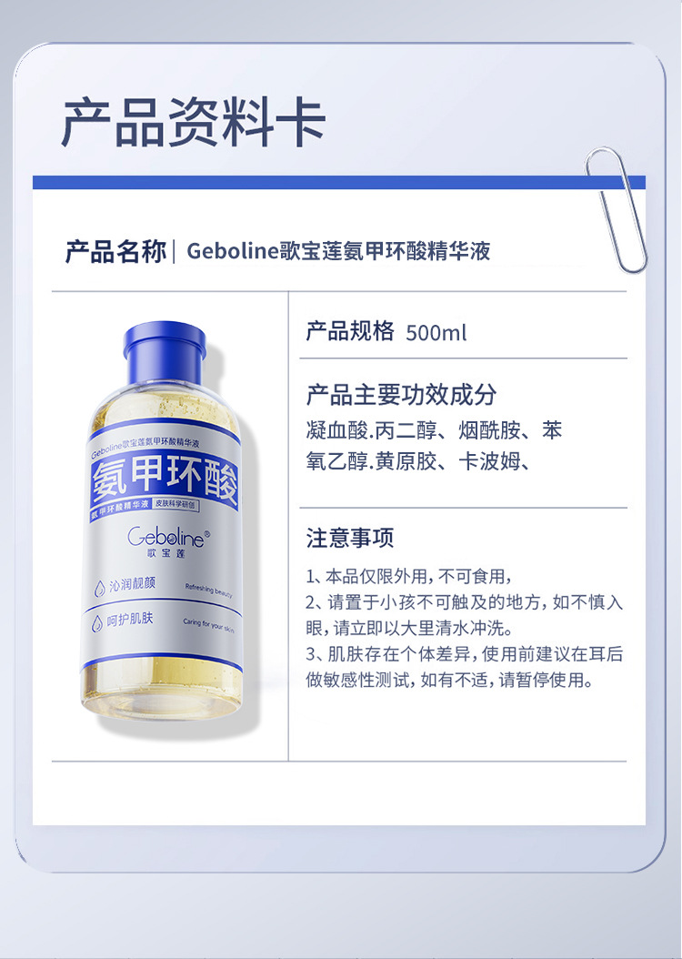 Gebao Lian 500ml トラネキサム酸エッセンス トラネキサム酸湿布 保湿と肌の色を明るくし、顔を改善します