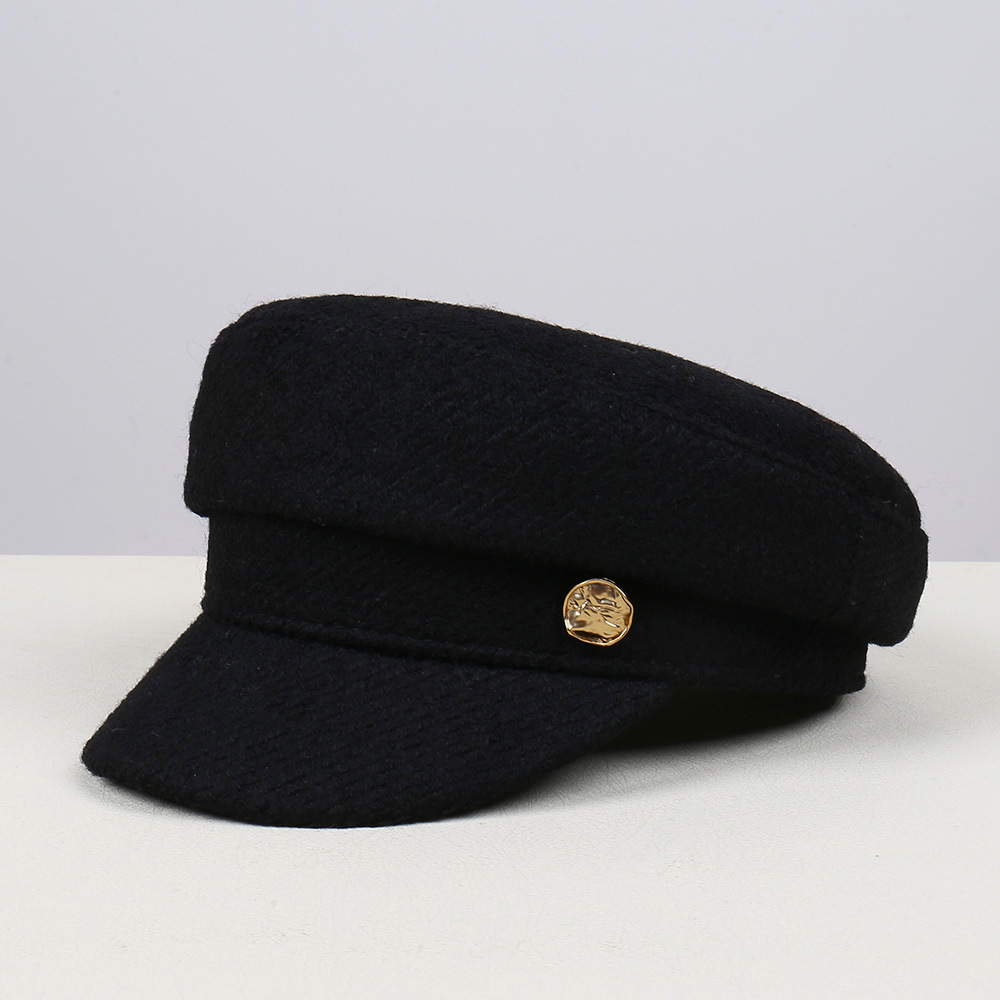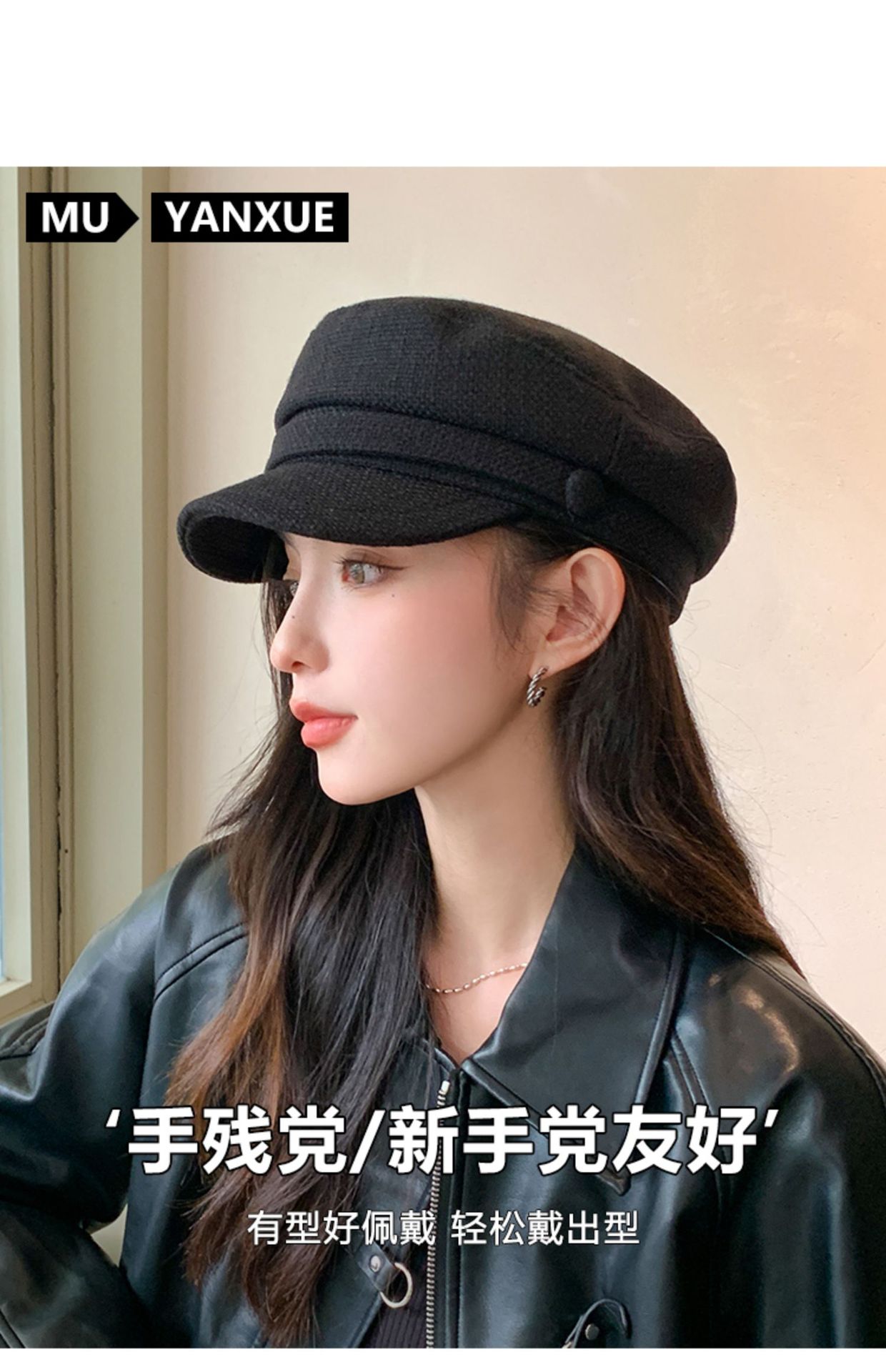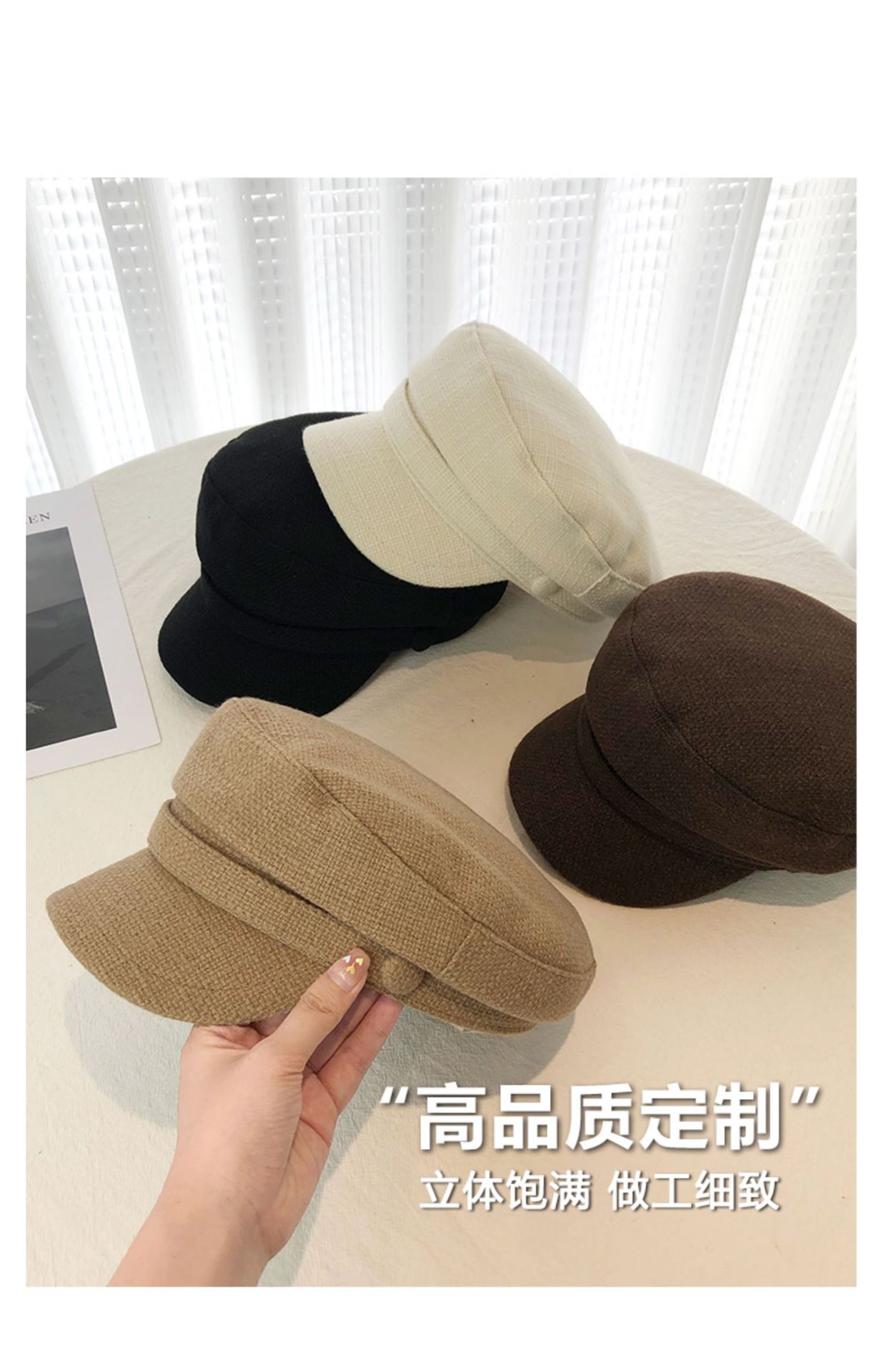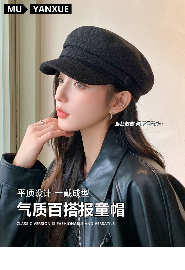 初冬新款纯色简约羊绒混纺舒适保暖八角帽金属小标装饰文艺平顶帽