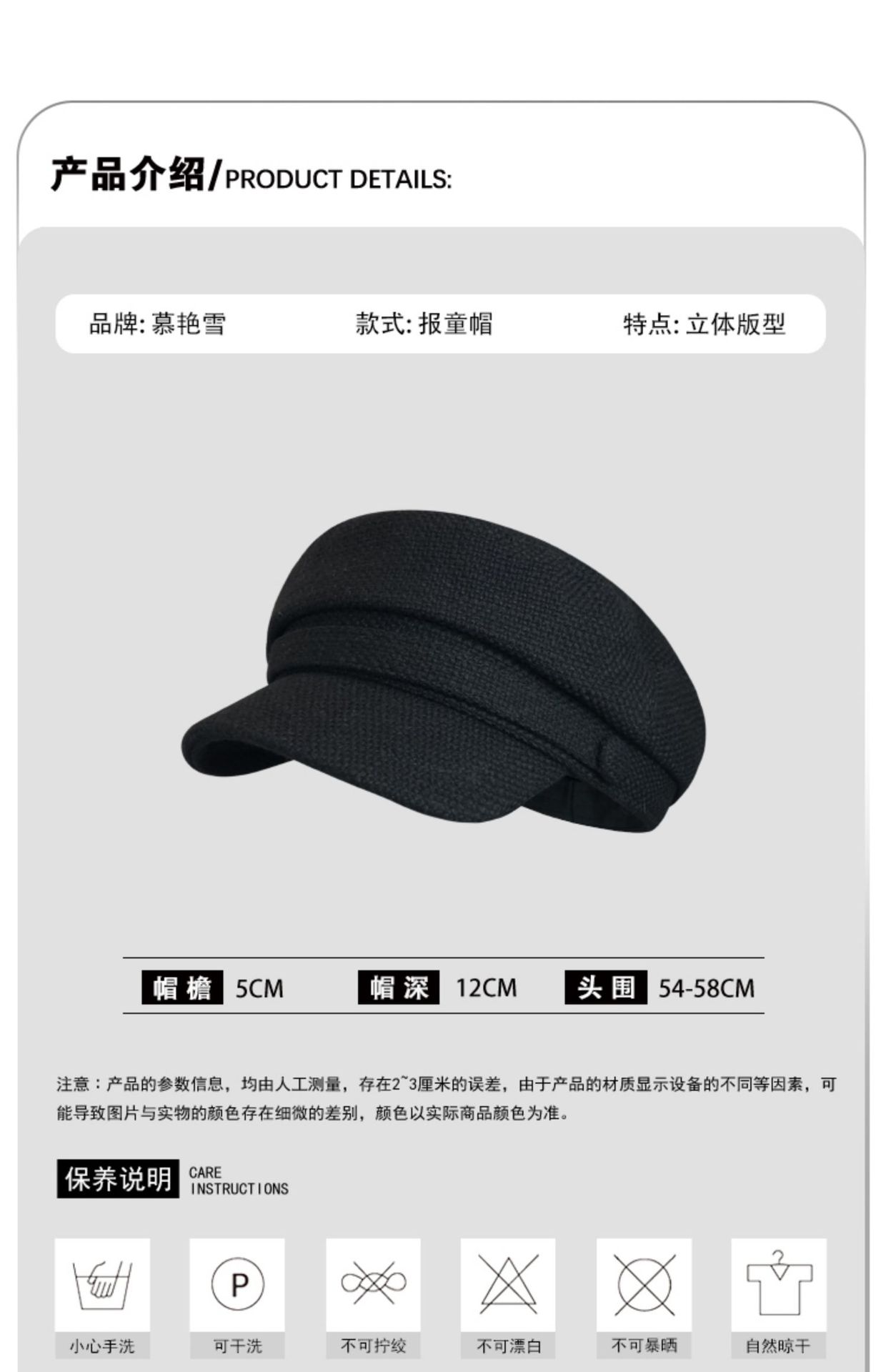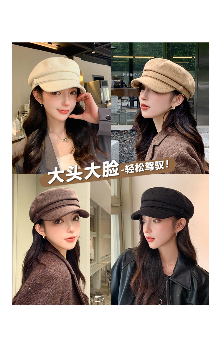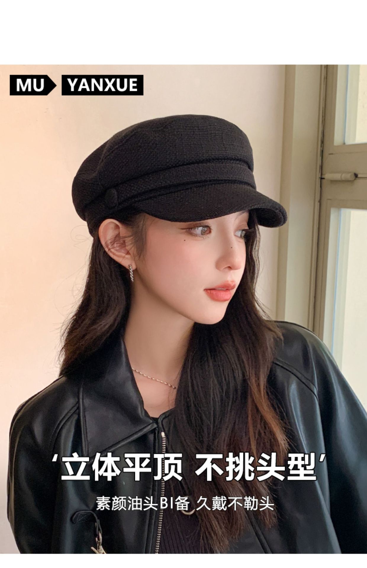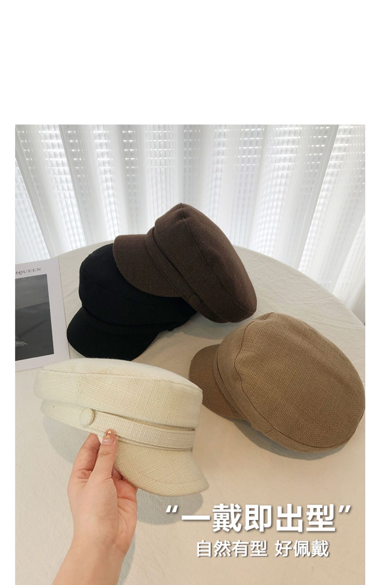 初冬新款纯色简约羊绒混纺舒适保暖八角帽金属小标装饰文艺平顶帽