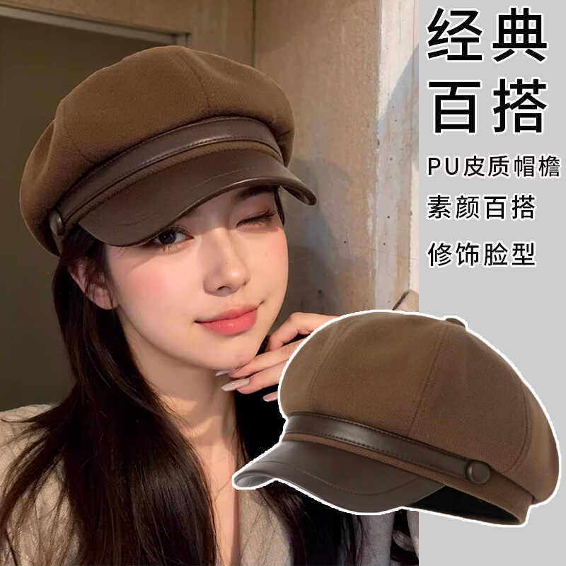 高品質の茶色の海軍の帽子の女性の秋冬のカジュアルなアヒルの舌の帽子のシンプルな通気性の英倫の復古の八角形の平の帽子