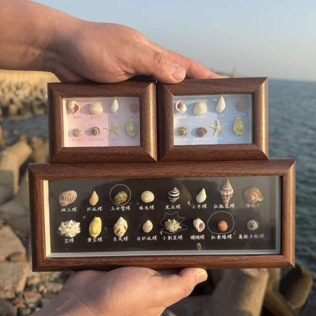 创意海滩贝壳相框中空立体相框标本收纳框集物癖盒子摆件现货批发