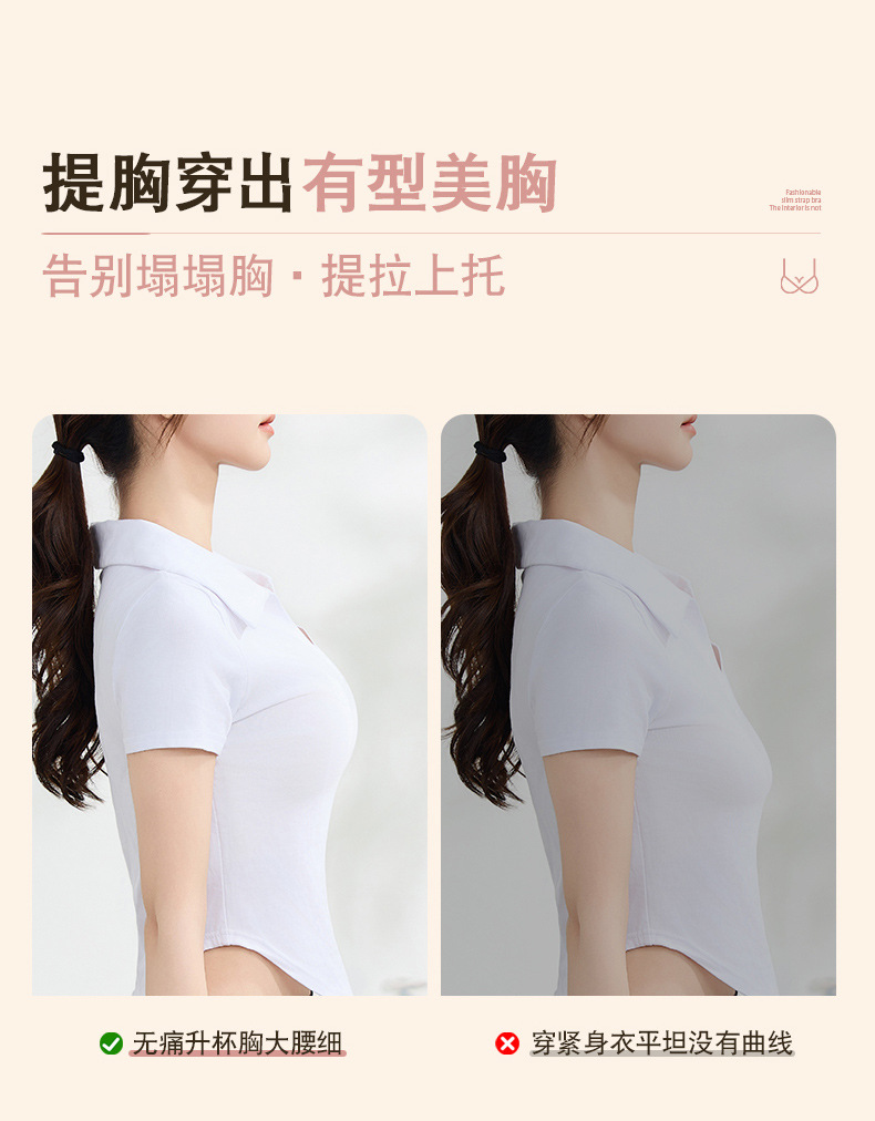 女性用リキッドファンデーション拡張下着、目に見えない着用、薄いショルダーストラップ、小さな胸のプッシュアップ、たるみ防止、シームレスで快適なブラジャー